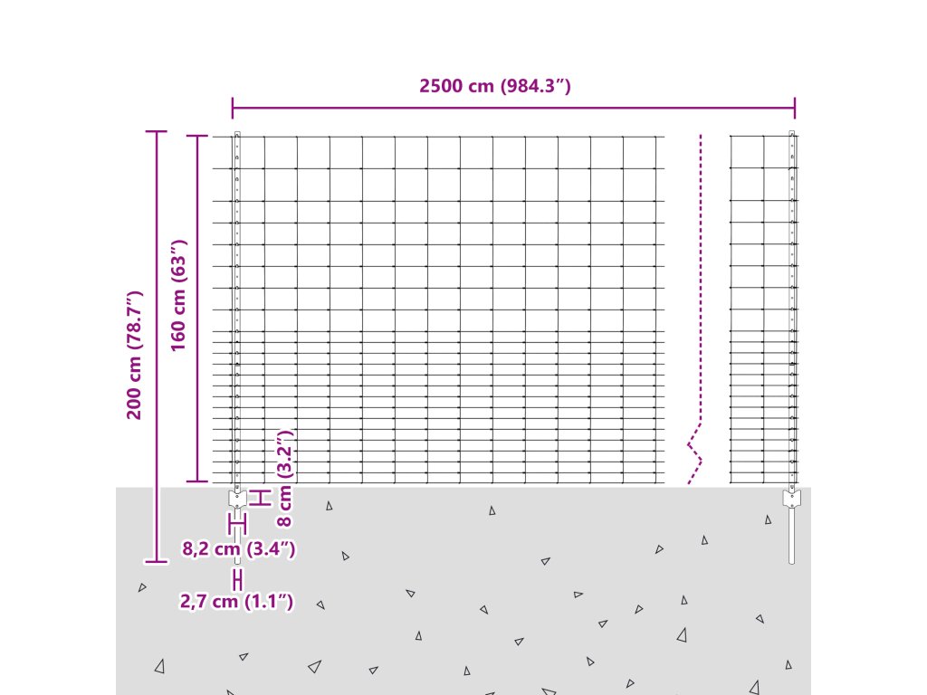 - Celkové rozměry: 2500,0 x 2,7 x 160 cm (D x Š x V)