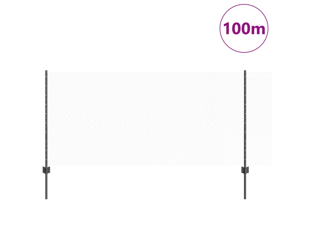 Plot s sloupkem Šedá 1 x 100 m Ocel a PVC