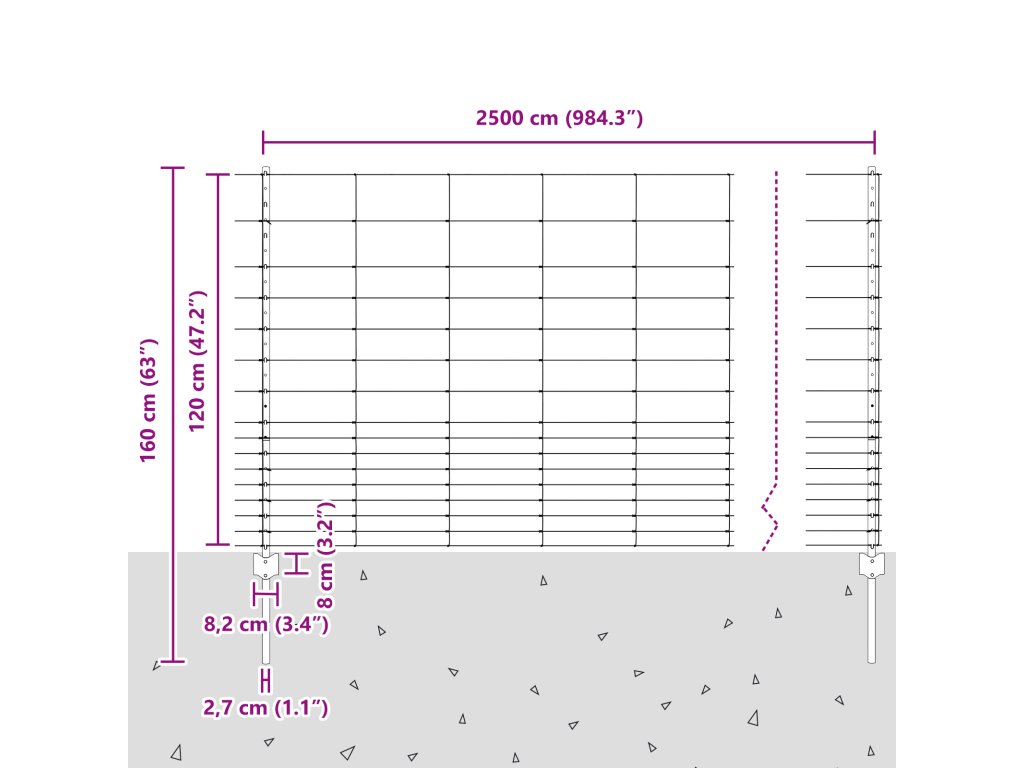 - Celkové rozměry: 2500 x 2,7 x 120 cm (D x Š x V)