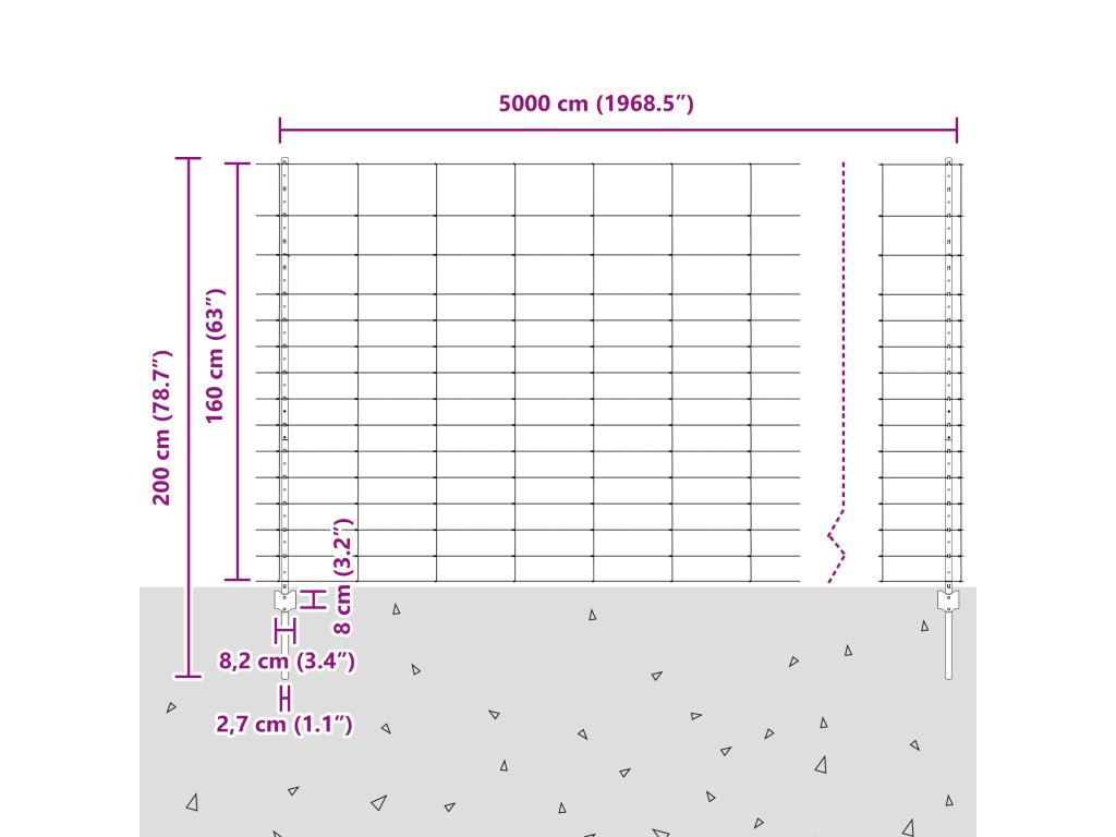 - Celkové rozměry: 5000,0 x 2,7 x 160 cm (D x Š x V)