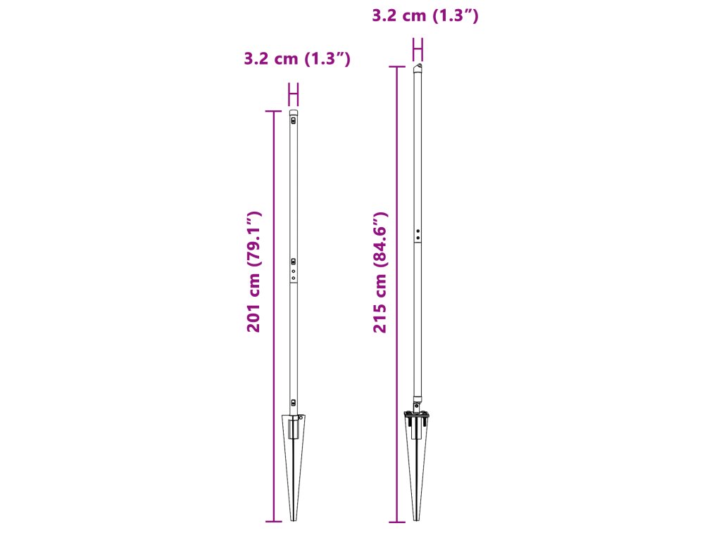 - Celkové rozměry: 3,2 x 3,2 x 215 cm (D x Š x V)