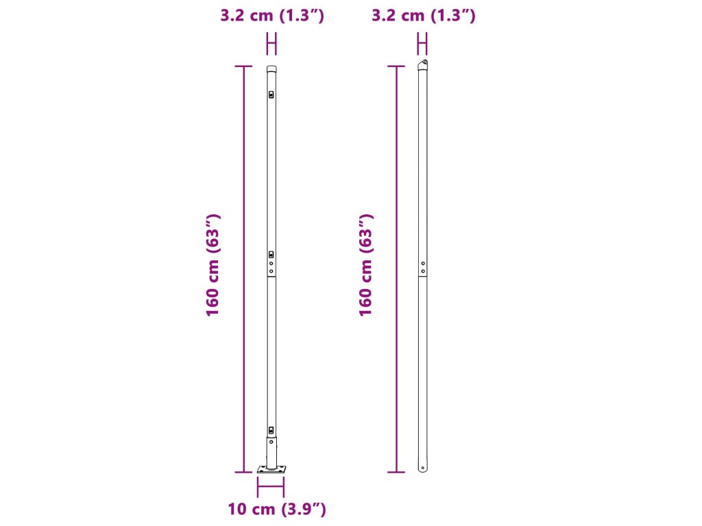 - Celkové rozměry: 3,2 x 3,2 x 160 cm (D x Š x V)