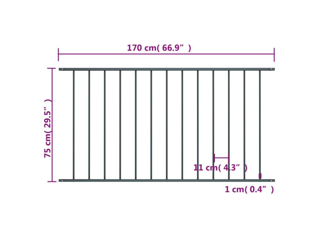 Tento plotový panel je vyroben z pevné práškově lakované oceli a v kombinaci s plotovými sloupky (nejsou součástí balení) vytvoří pevnou a odolnou přepážku pro vaši zahradu. Náš plotový panel je odolný vůči povětrnostním vlivům a korozi a je ideální k tomu, aby se na váš pozemek nedostal žádný host. Díky přiloženému montážnímu materiálu lze zahradní plot snadno namontovat do země.