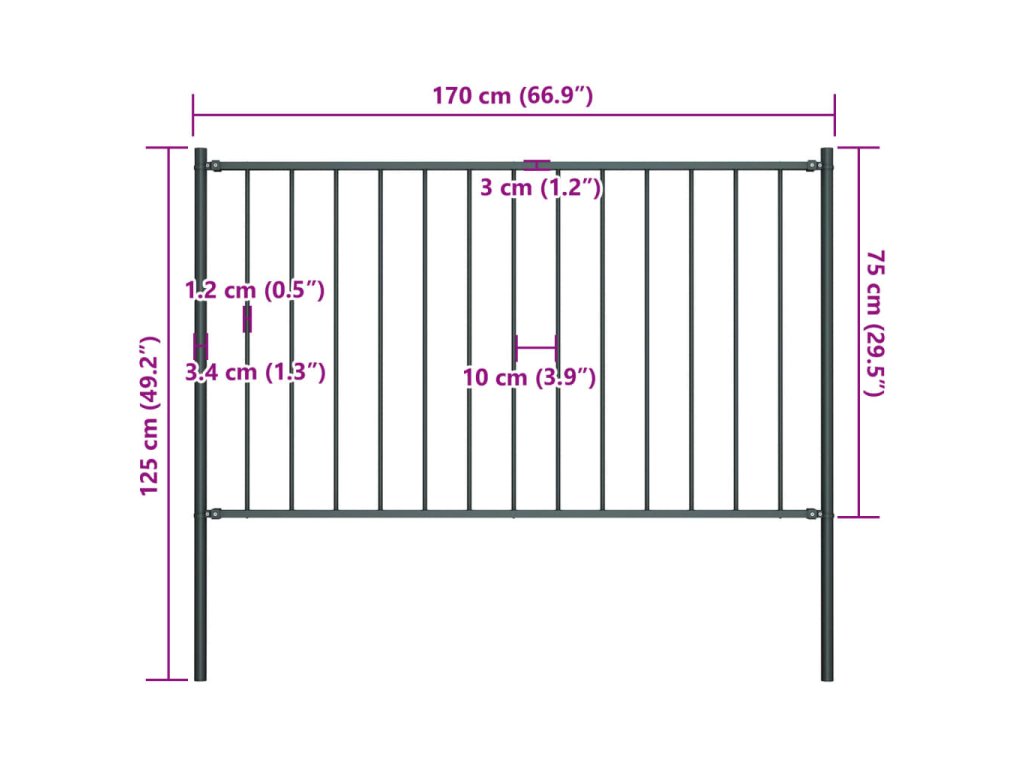 Tento plotový panel je vyroben z pevné práškově lakované oceli a vytvoří pevnou a odolnou přepážku pro vaši zahradu. Náš plotový panel je odolný vůči povětrnostním vlivům a korozi a je ideální k tomu, aby se na váš pozemek nedostal žádný host. Díky přiloženému montážnímu materiálu lze zahradní plot snadno namontovat do země.