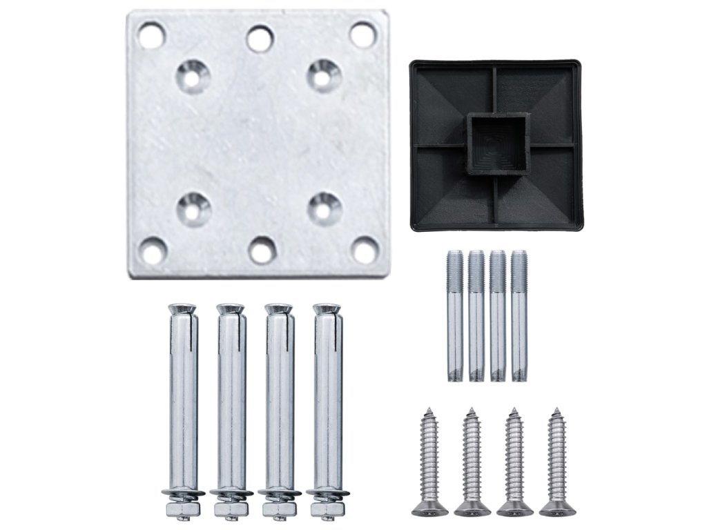 Modulární systém plotových desek jednak usnadňuje jejich instalaci a jednak umožňuje další rozšíření vašeho plotu. Na sloupcích se nachází tři drážky, které vám umožní sestavit plot různými způsoby, například v jedné rovině (180 stupňů), v pravém úhlu (90 stupňů) nebo ve tvaru písmene T. Multifunkční ocelové nohy lze upevnit dvěma způsoby. První z nich je jejich přišroubování na povrch pomocí dodaných kotevních šroubů. Druhým způsobem je jejich ukotvení do cementové základny pomocí zemního hrotu (není součástí dodávky).
