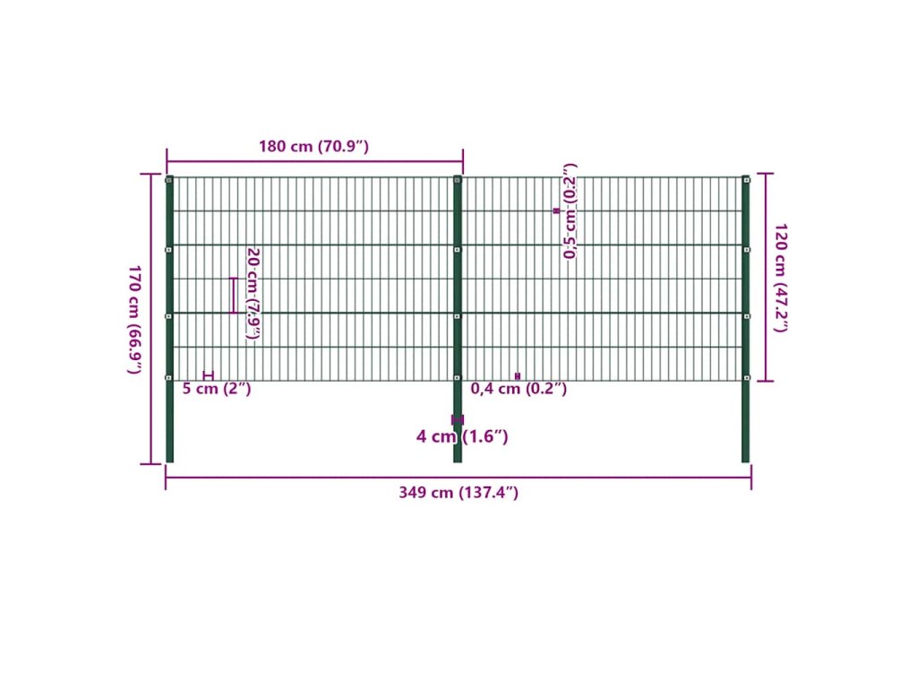 Plotový panel se sloupky železný 349 x 120 cm zelený