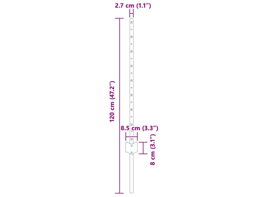 Plotový sloupek. 44 pcs Stříbrná 120 cm Ocel