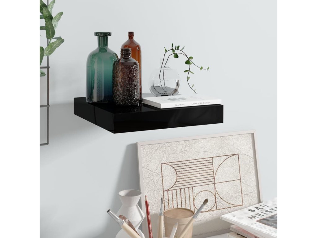 Plovoucí nástěnná police černá vysoký lesk 23x23,5x3,8 cm MDF