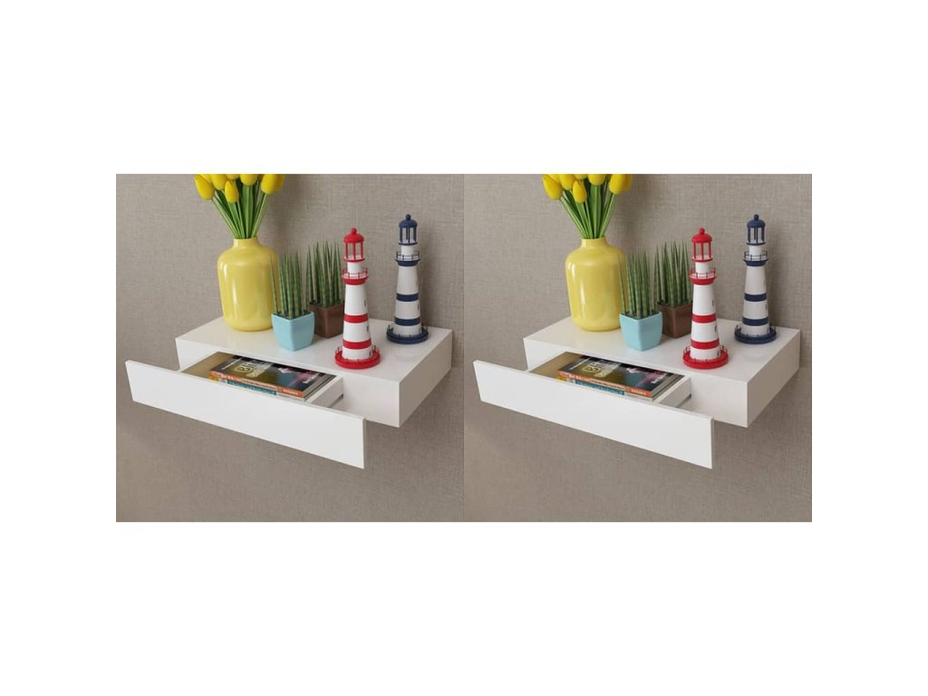 Plovoucí nástěnná police s šuplíkem 2 ks bílá 48 cm