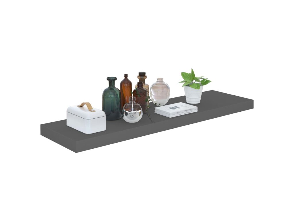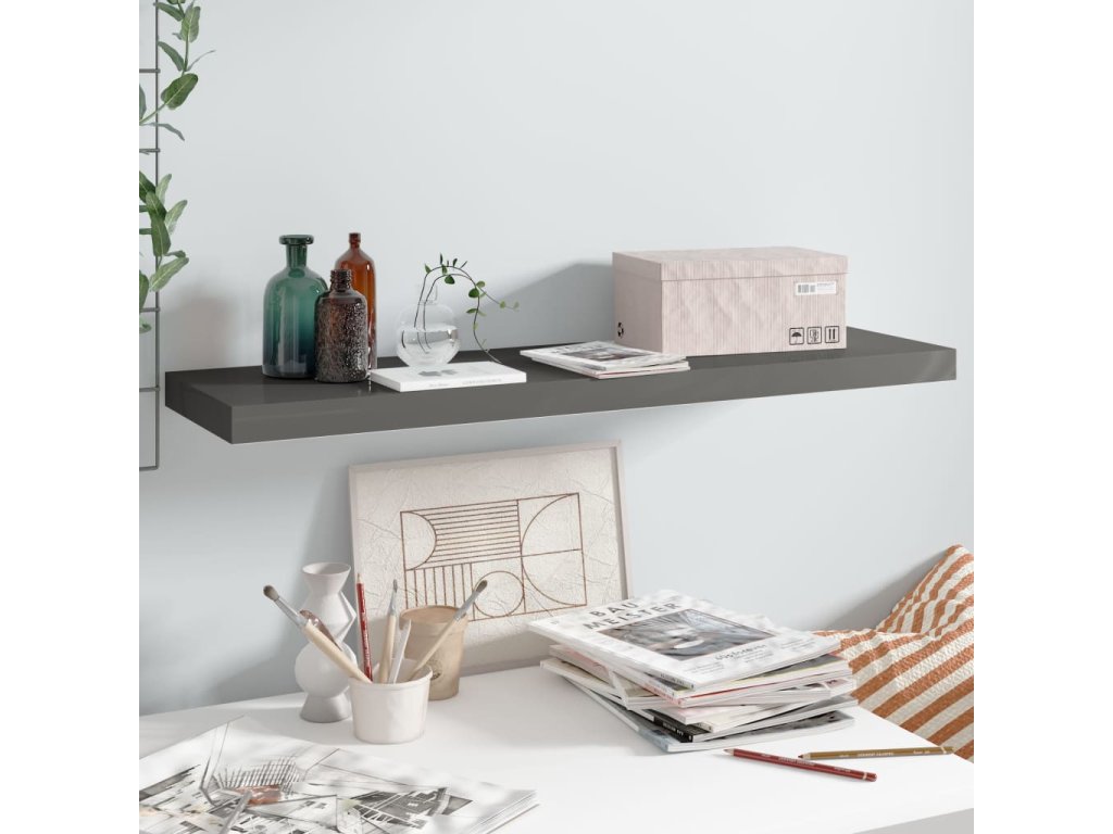 Plovoucí nástěnná police šedá vysoký lesk 90x23,5x3,8 cm MDF