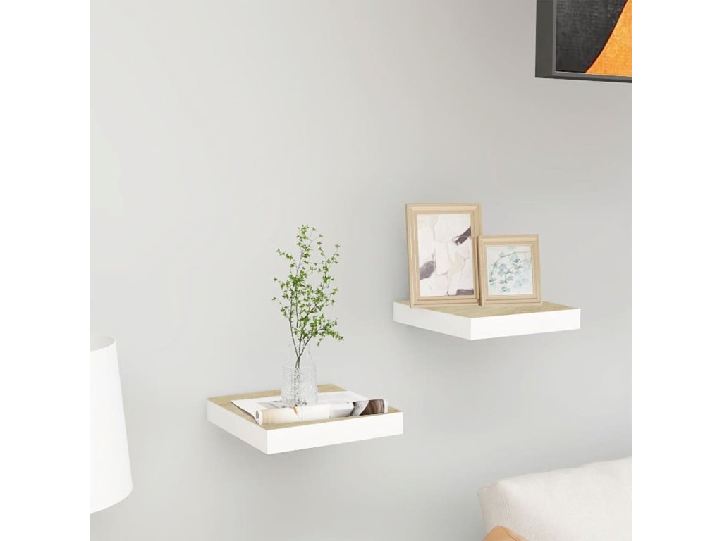 Plovoucí nástěnné police 2 ks dub a bílé 23 x 23,5 x 3,8 cm MDF