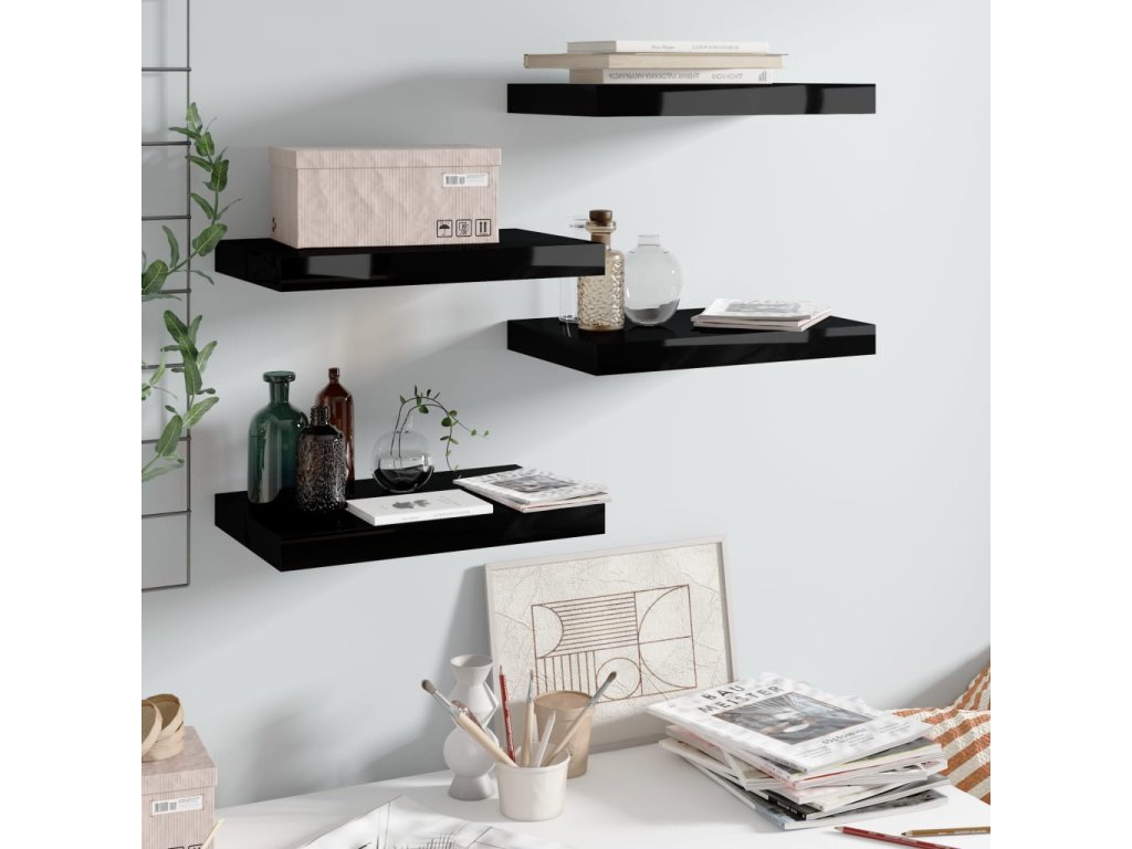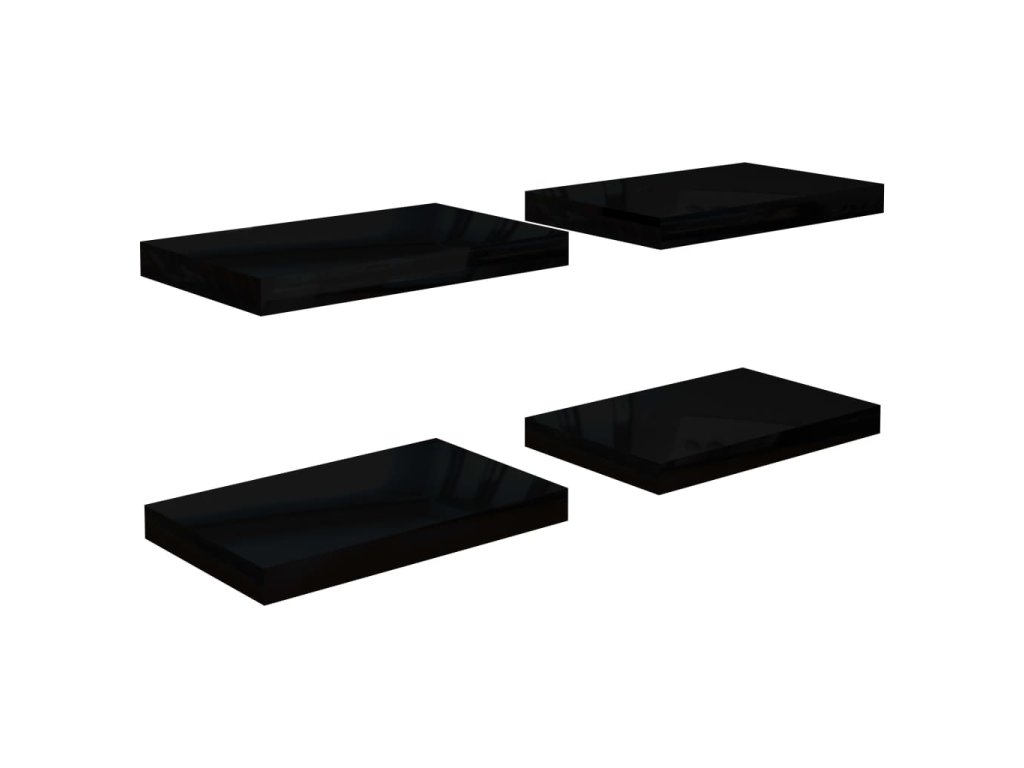 Plovoucí nástěnné police 4 ks lesklé černé 40 x 23 x 3,8 cm MDF