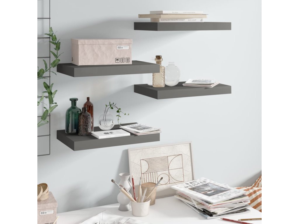 Plovoucí nástěnné police 4 ks šedé vysoký lesk 40x23x3,8 cm MDF