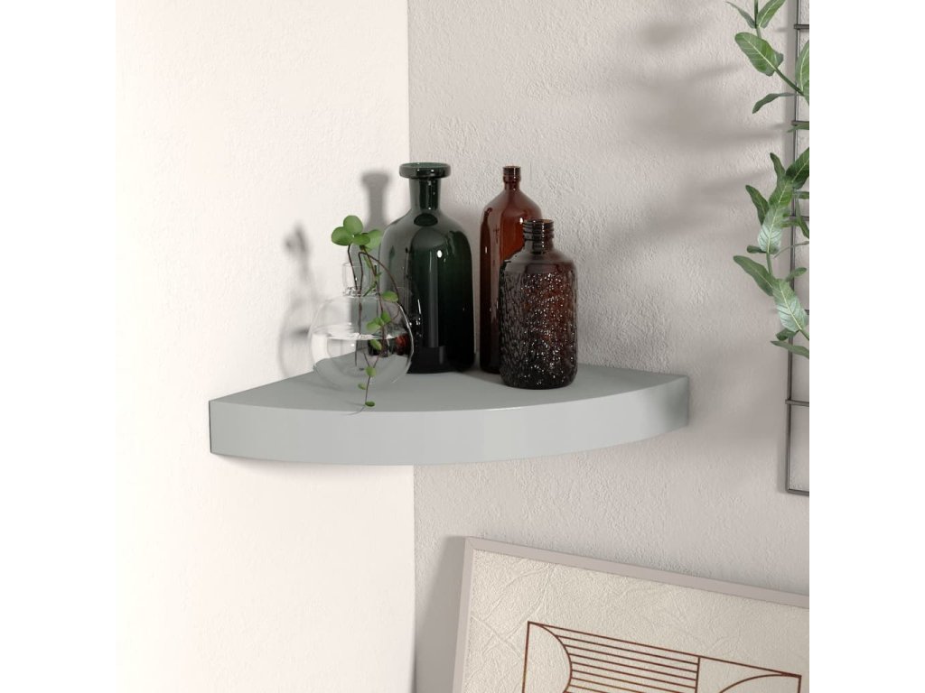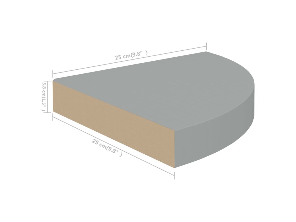 Plovoucí rohová police šedá 25 x 25 x 3,8 cm MDF