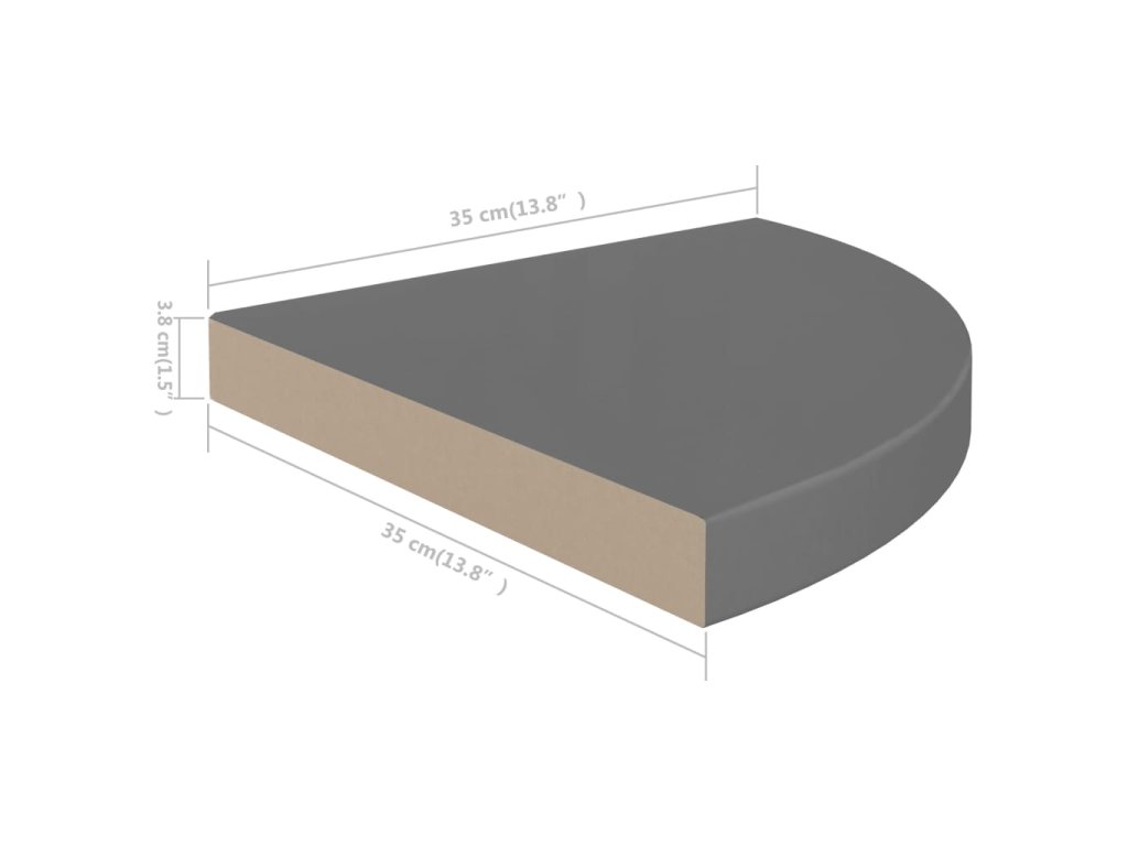 Plovoucí rohová police šedá vysoký lesk 35 x 35 x 3,8 cm MDF