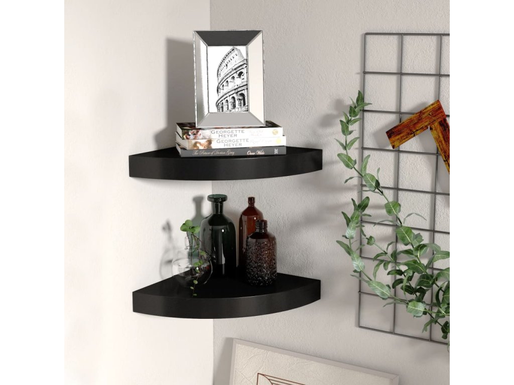 Plovoucí rohové police 2 ks černé 25 x 25 x 3,8 cm MDF