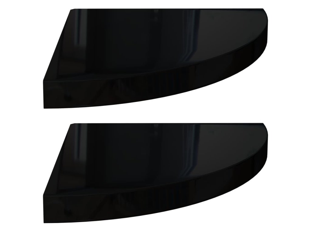 Plovoucí rohové police 2 ks černé vysoký lesk 35x35x3,8 cm MDF