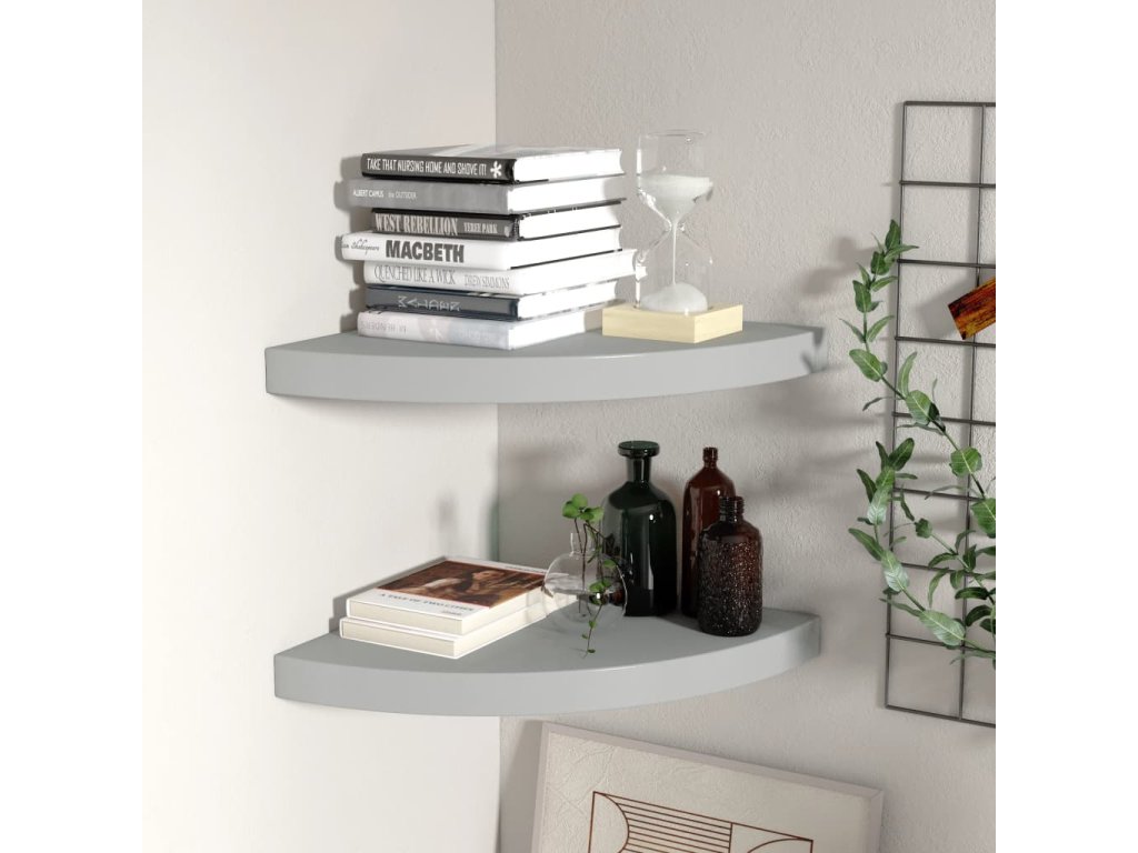 Plovoucí rohové police 2 ks šedé 35 x 35 x 3,8 cm MDF