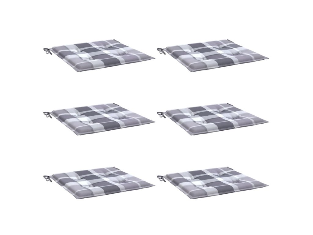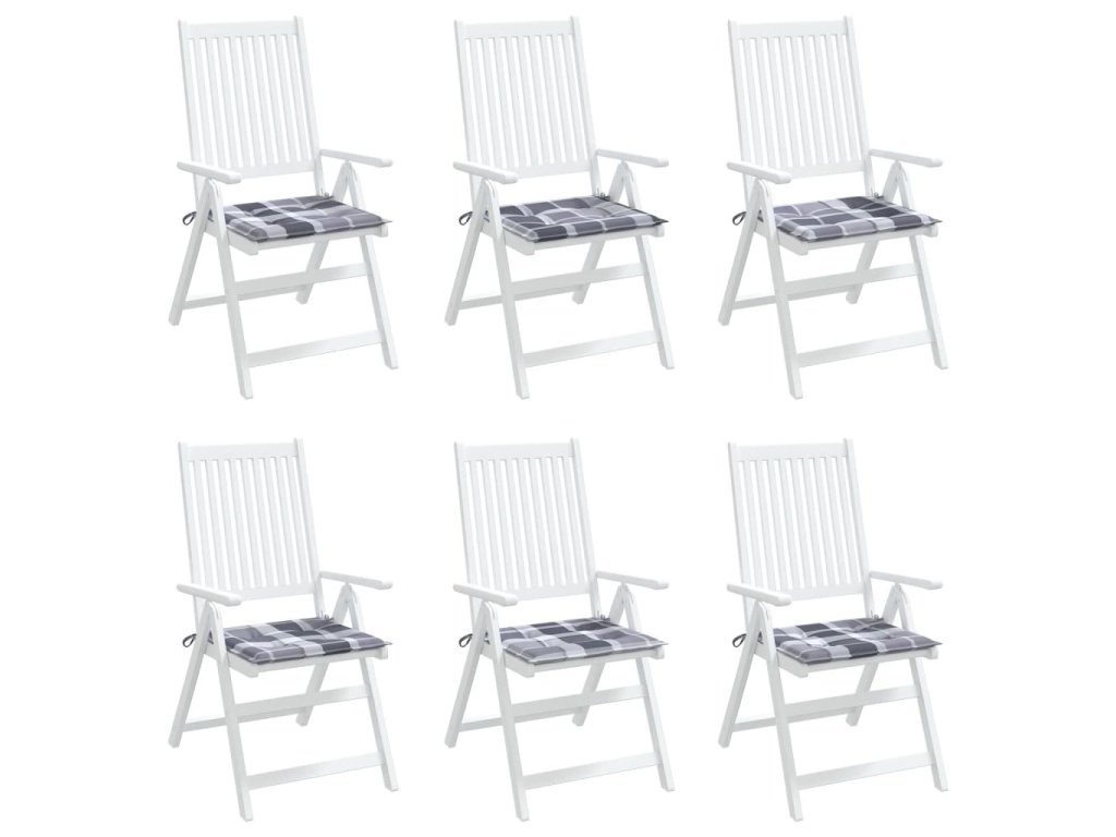 Podušky na zahradní židli 6 ks šedé kárované 40x40x3 cm oxford