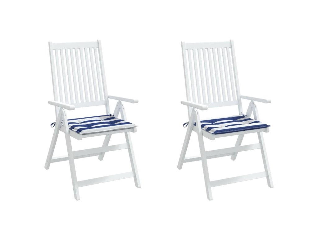Podušky na židli 2 ks modré a bílé pruhy 50x50x4 cm textil