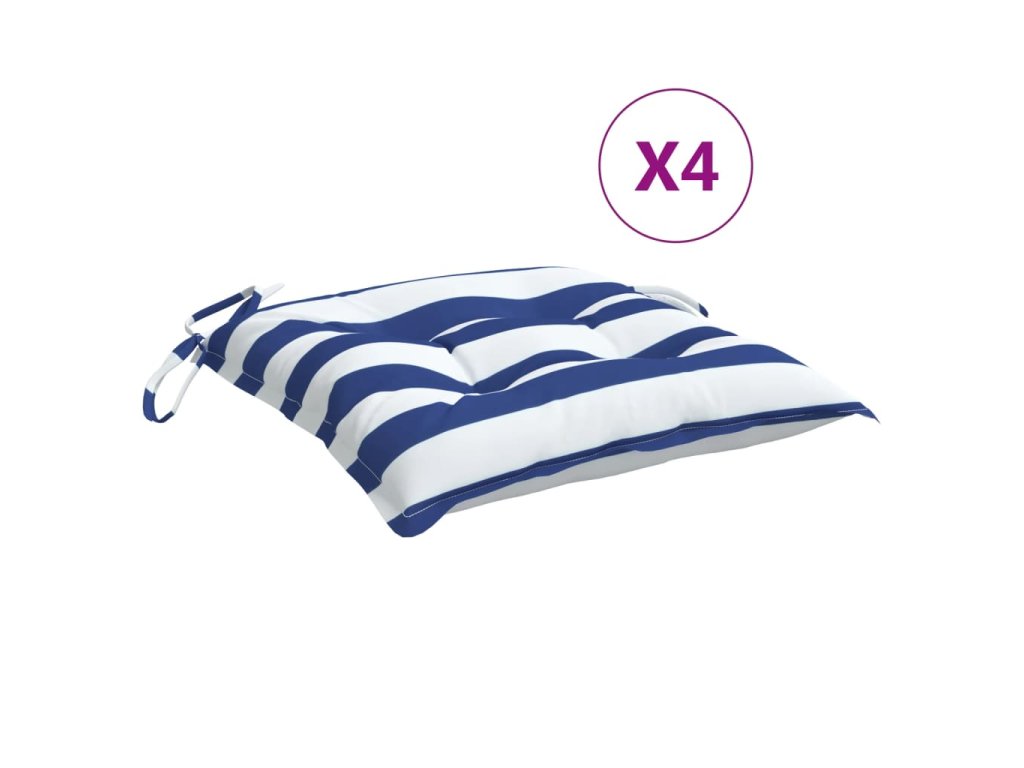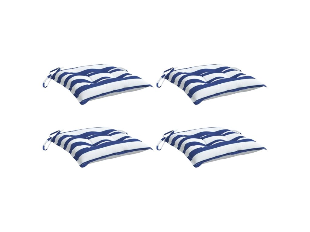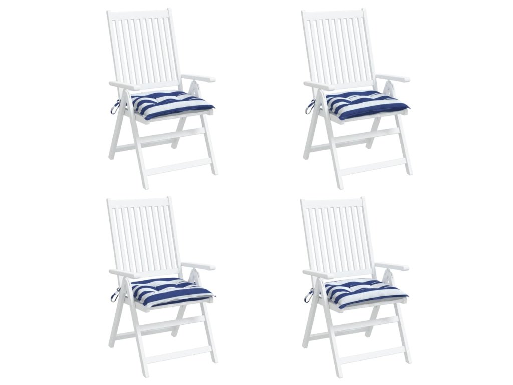 Podušky na židli 4 ks modré a bílé pruhy 50 x 50 x 7 cm oxford