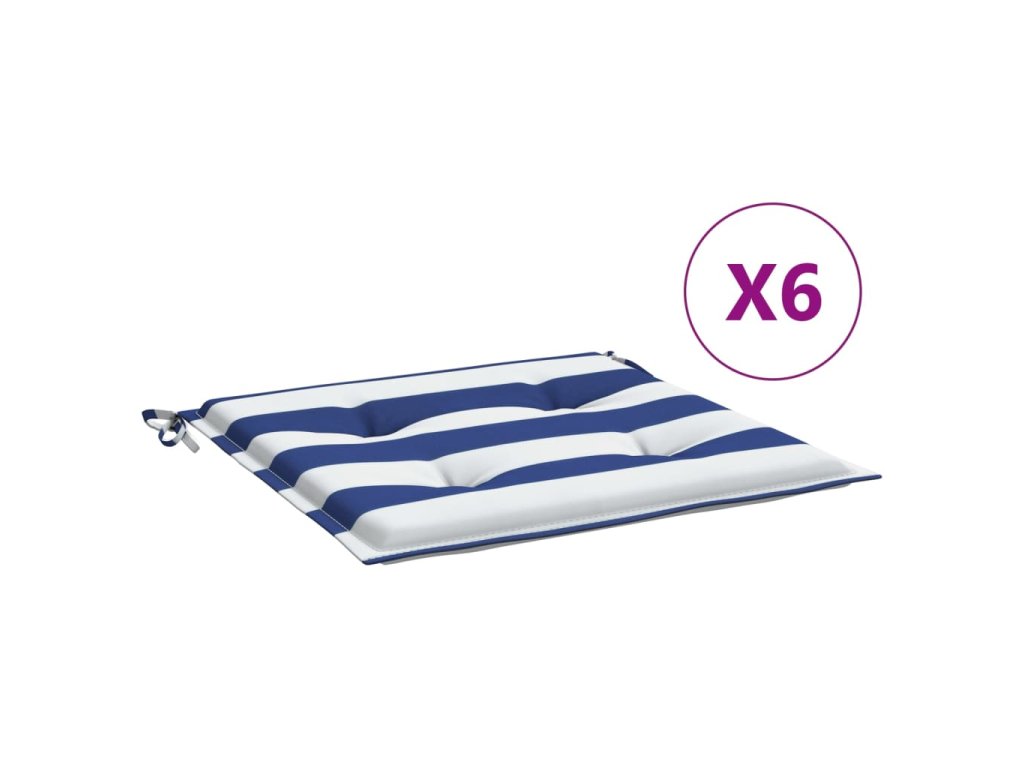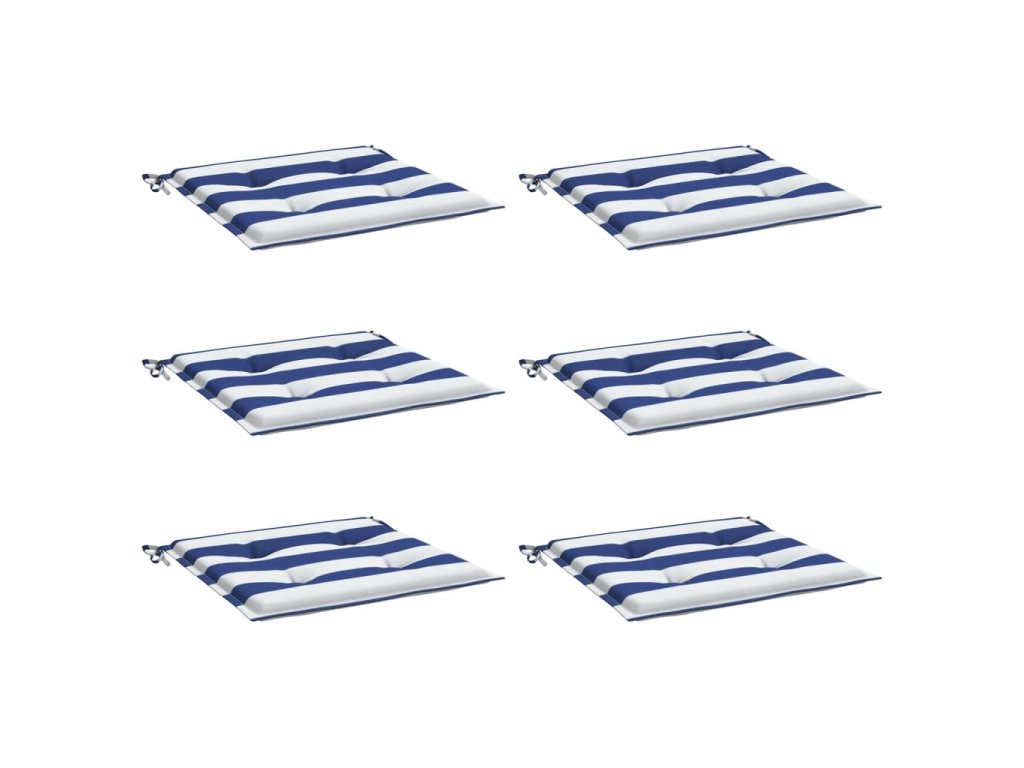 Podušky na židli 6 ks modré a bílé pruhy 40x40x4 cm textil