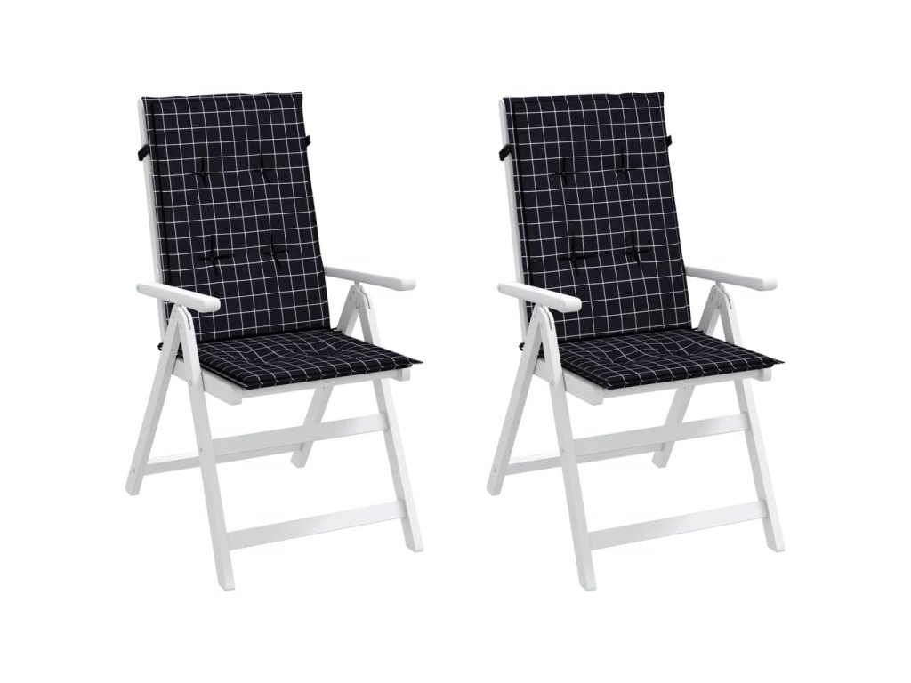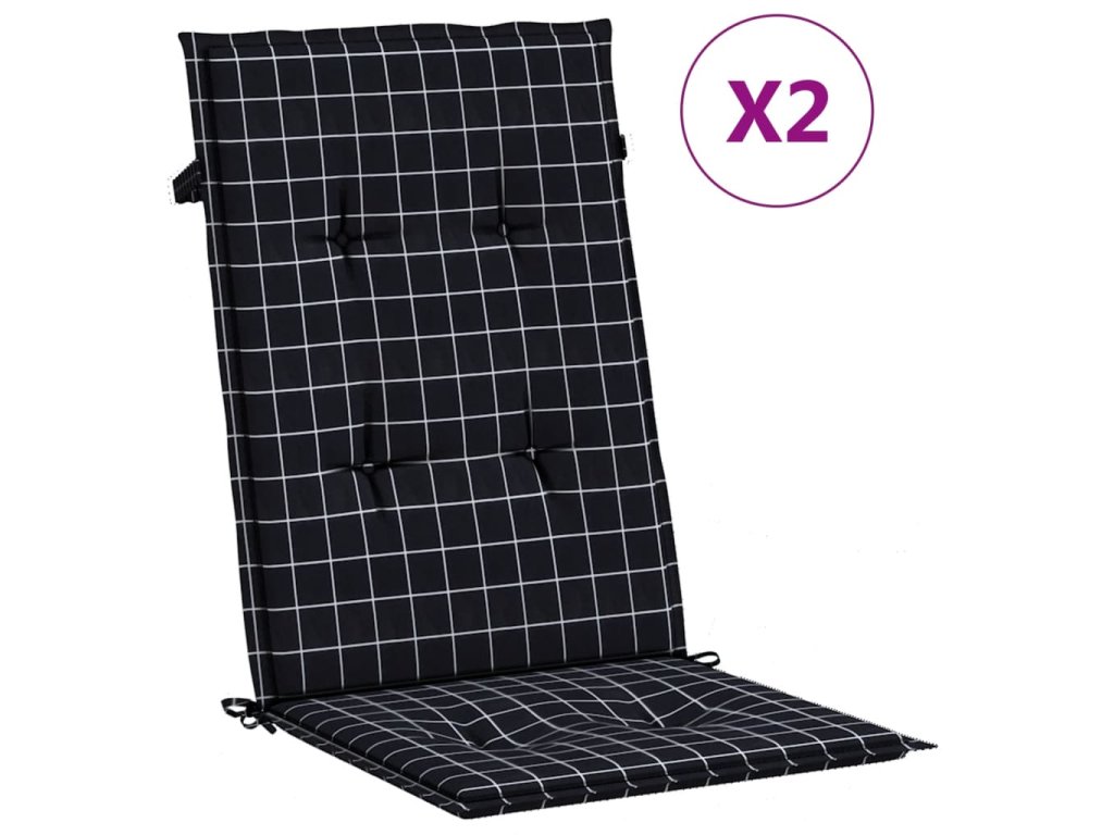 Podušky na židli s vysokým opěradlem 2 ks černé kárované textil