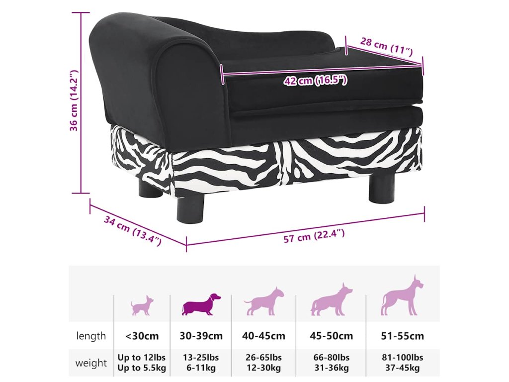 Pohovka pro psy černá 57 x 34 x 36 cm plyš