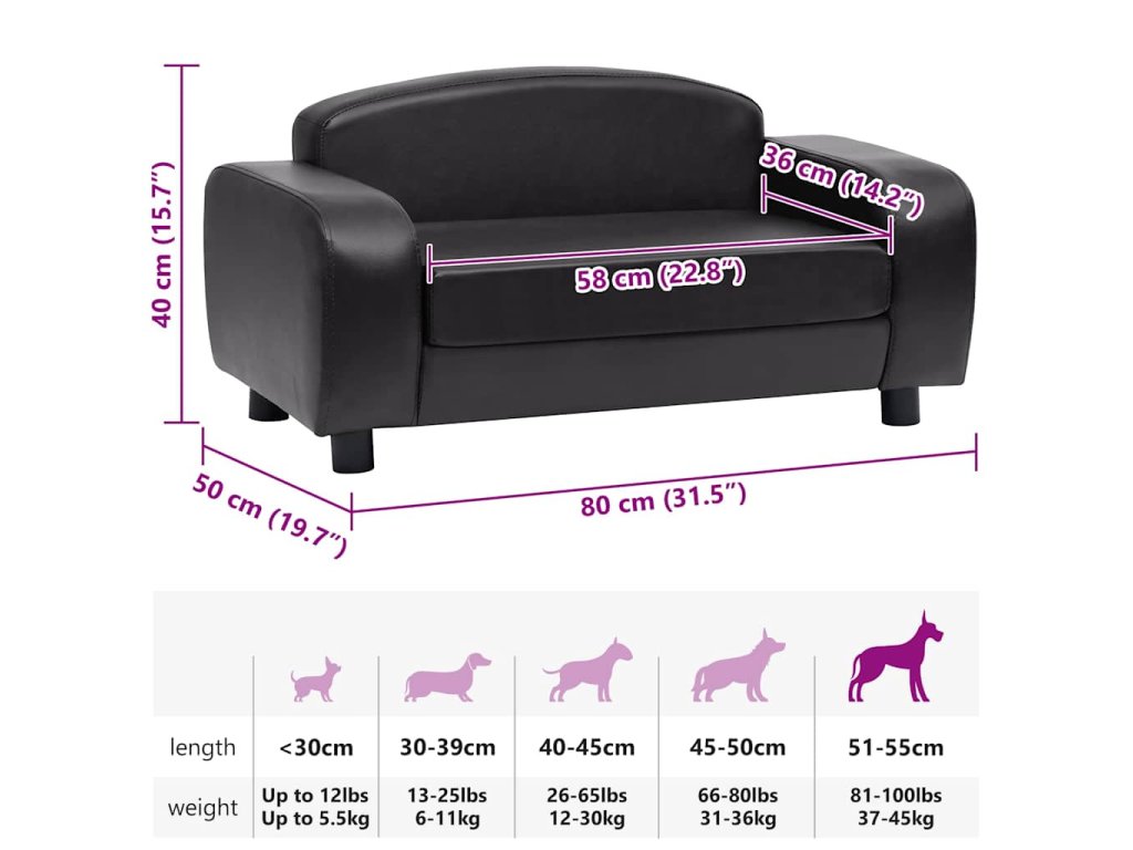 Pohovka pro psy černá 80 x 50 x 40 cm umělá kůže