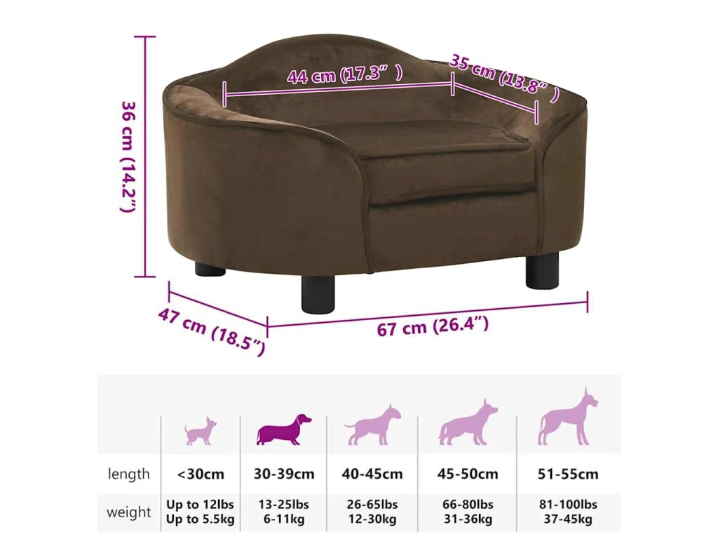 Pohovka pro psy hnědá 67 x 47 x 36 cm plyš