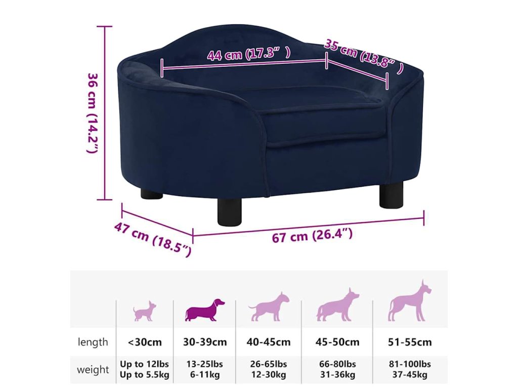 Pohovka pro psy modrá 67 x 47 x 36 cm plyš