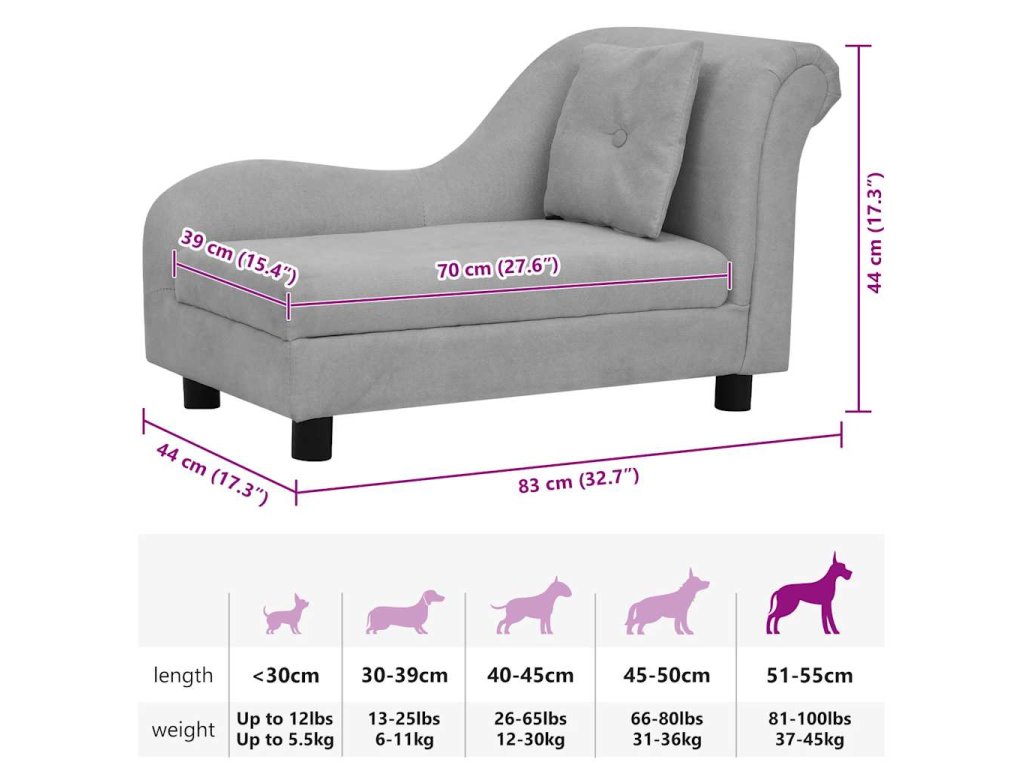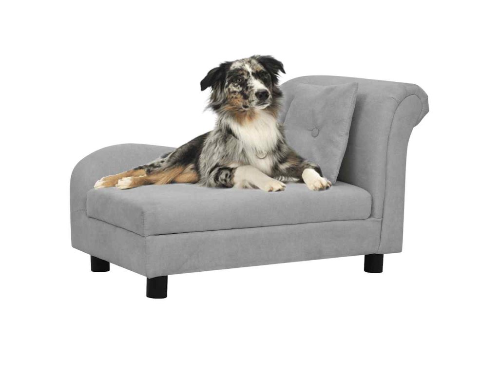 Pohovka pro psy s polštářem šedá 83 x 44 x 44 cm plyš