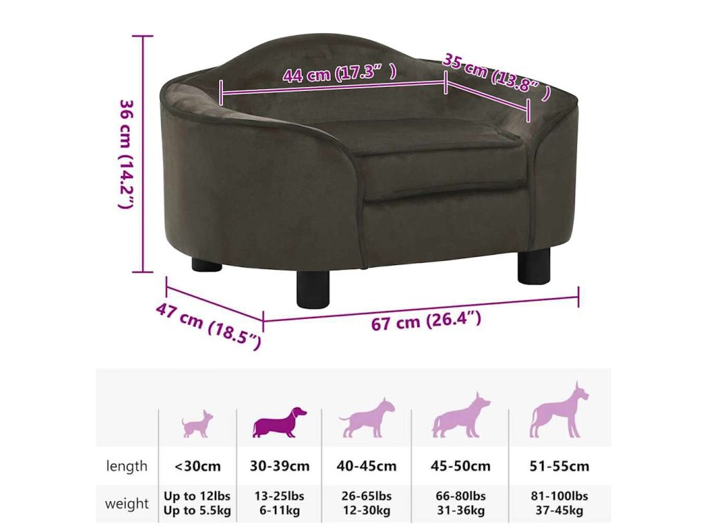 Silně polstrovaná pohovka pro domácí mazlíčky má dřevěný rám potažený měkkým plyšem, aby se na ní vašim čtyřnohým kamarádům pohodlně odpočívalo. Nohy s protiskluzovým designem zajišťují stabilitu a pevnost celé konstrukce. Vnější tělo je také mimořádně odolné, váš pejsek proto může relaxovat v naprostém bezpečí. Potah polštáře lze vyprat, aby pohovka zůstala krásně svěží.