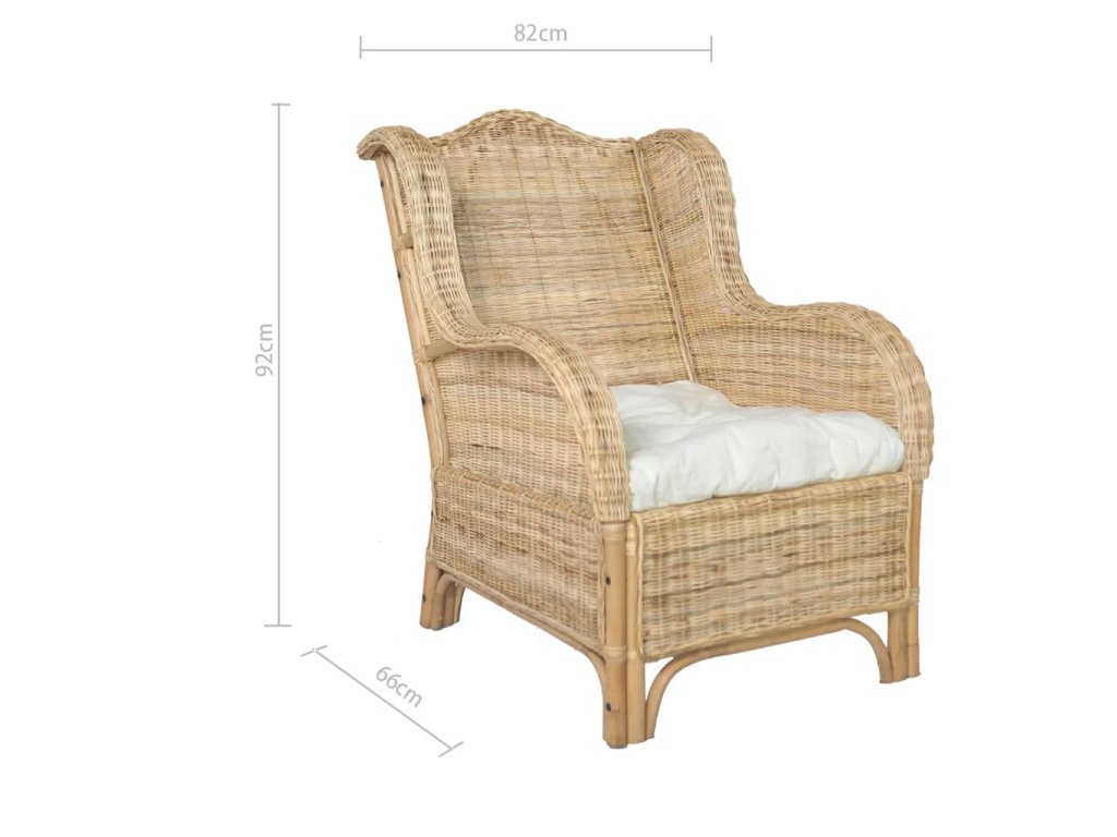 Židle je vyrobená z přírodního ratanu, takže jsou odolná a snadno se čistí. Přiložená poduška poskytuje maximální pohodlí a můžete se na ní skvěle uvolnit po náročném dni. Hodí se pro filmové večery v rodinném kruhu, hraní videoher, četbu nebo sledování televize.