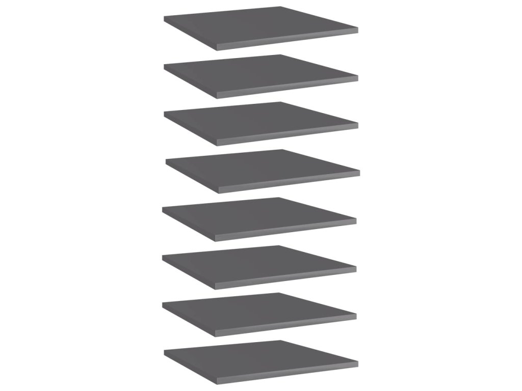 Police na knihy 8 ks šedé lesklé 40x40x1,5 cm kompozitní dřevo