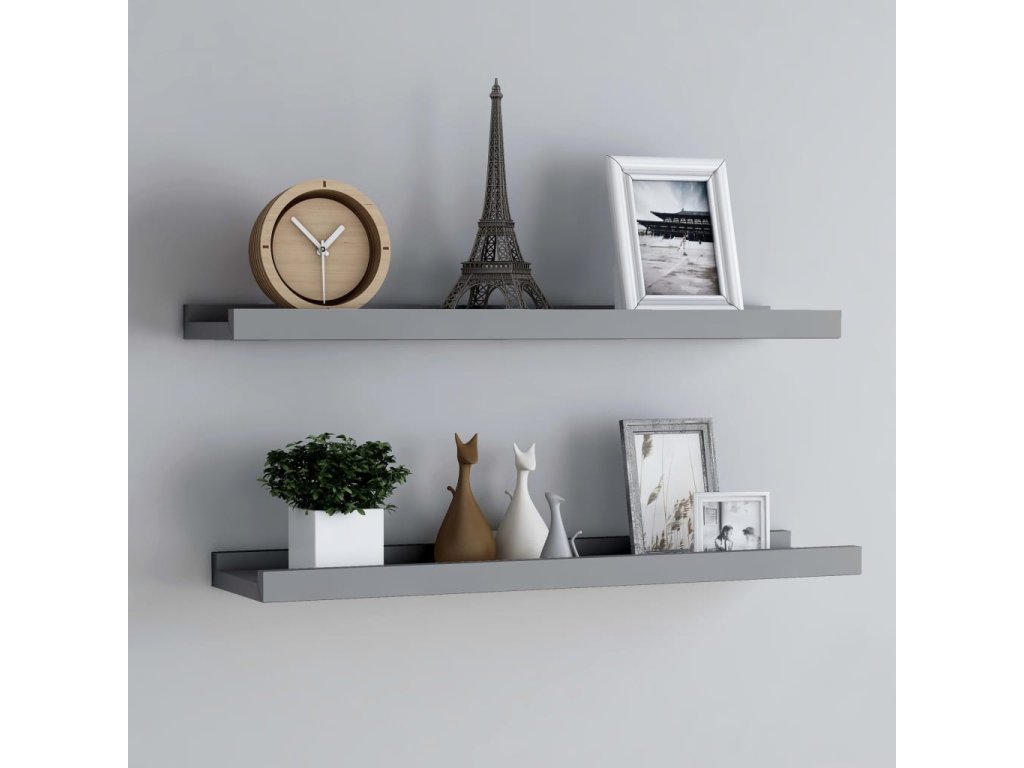 Poličky na zarámované obrázky 2 ks šedé 80 x 9 x 3 cm MDF