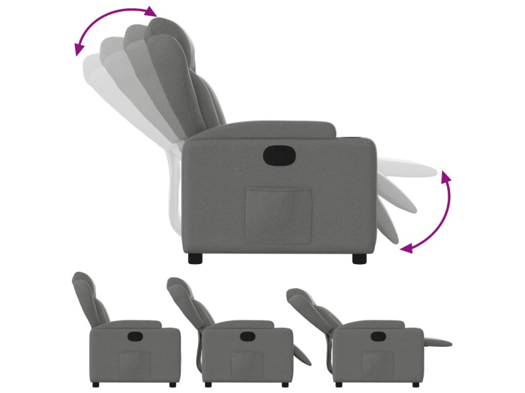 - Manuální funkce polohování: Toto polohovací křeslo má madlo na pravé straně. Opěrku nohou a opěradlo můžete ručně nastavit do libovolné polohy podle vašich potřeb jednoduchým zatažením za madlo. Tato funkce umožňuje maximální sklon 135 stupňů. Opěradlo se navíc snadno vrátí do původní polohy zatažením za madlo.