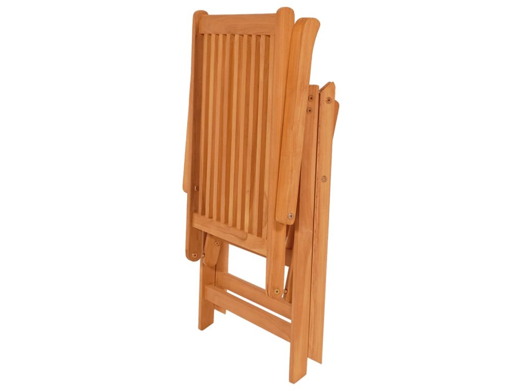 Skládací a polohovací dřevěná židle má klasický design. Nábytek je zhotovený z extrémně odolného teakového tvrdého dřeva, které již prošlo procesem smršťování, bylo uměle vysušené a poté jemně a dohladka obroušené. Teakové dřevo je oceňované pro svou výjimečnou pevnost a klimatickou odolnost, a proto je jedním z nejoblíbenějších materiálů pro výrobu zahradního nábytku. Je to skvělá volba, pokud si chcete pořídit venkovní výbavu, která vám vydrží sloužit dlouhá léta. Opěradlo židle lze naklonit do 7 různých poloh, takže si vždy najdete pozici, která vám bude zrovna nejpohodlnější. Zahradní židle je navíc lehká, můžete ji tudíž bez námahy přenášet. Pokud ji zrovna nepoužíváte, dá se jednoduše složit, aby vám zbytečně nezabírala místo. K vašemu komfortu přispějí také dodané podušky. Každá z nich má elastický popruh a dva páry šňůrek, za které ji můžete pevně přivázat k židli.