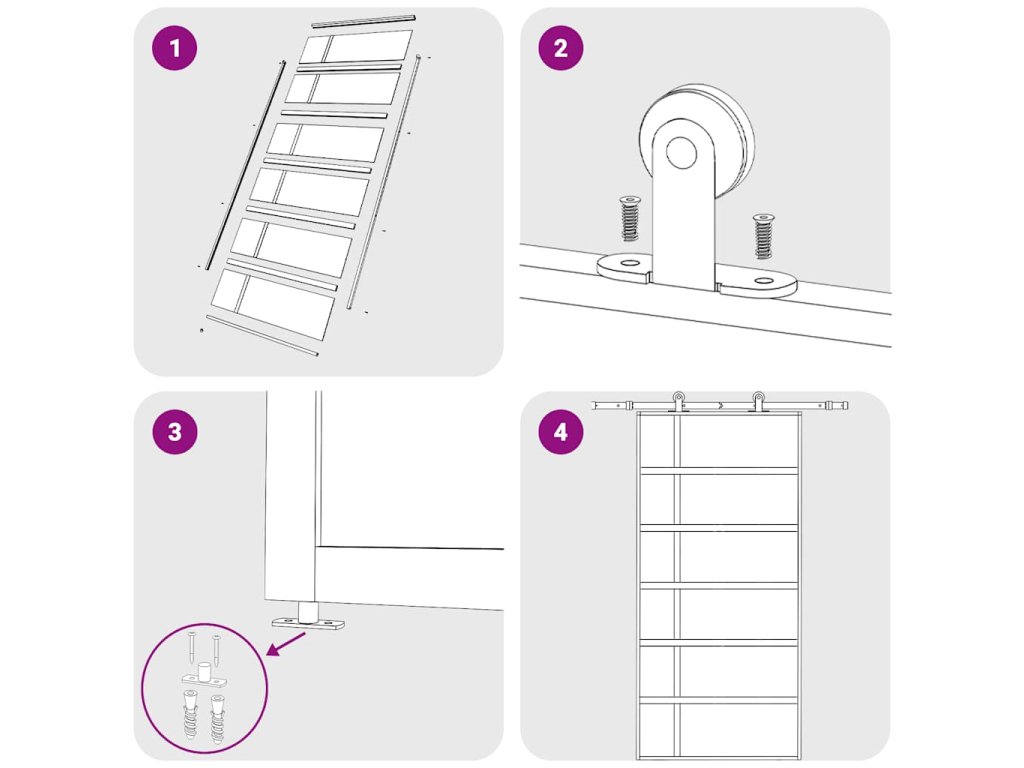 - Způsob instalace je vysvětlen v našem instalačním manuálu ke dveřím a sadám příslušenství.