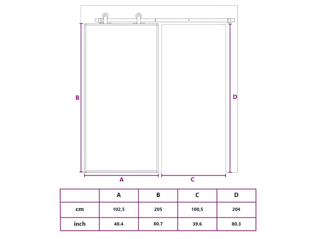 - Horní pojezdové kolejnice a pojezdová kolečka nejsou součástí balení.