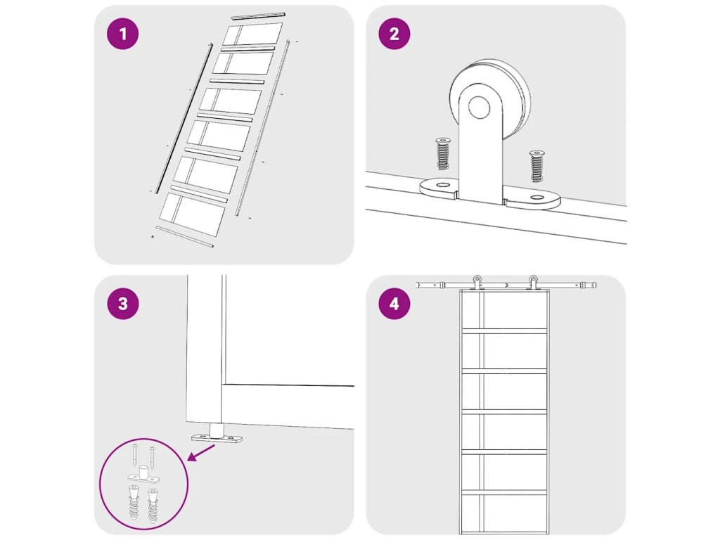 - Způsob instalace je vysvětlen v našem instalačním manuálu ke dveřím a sadám příslušenství.