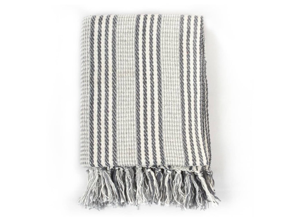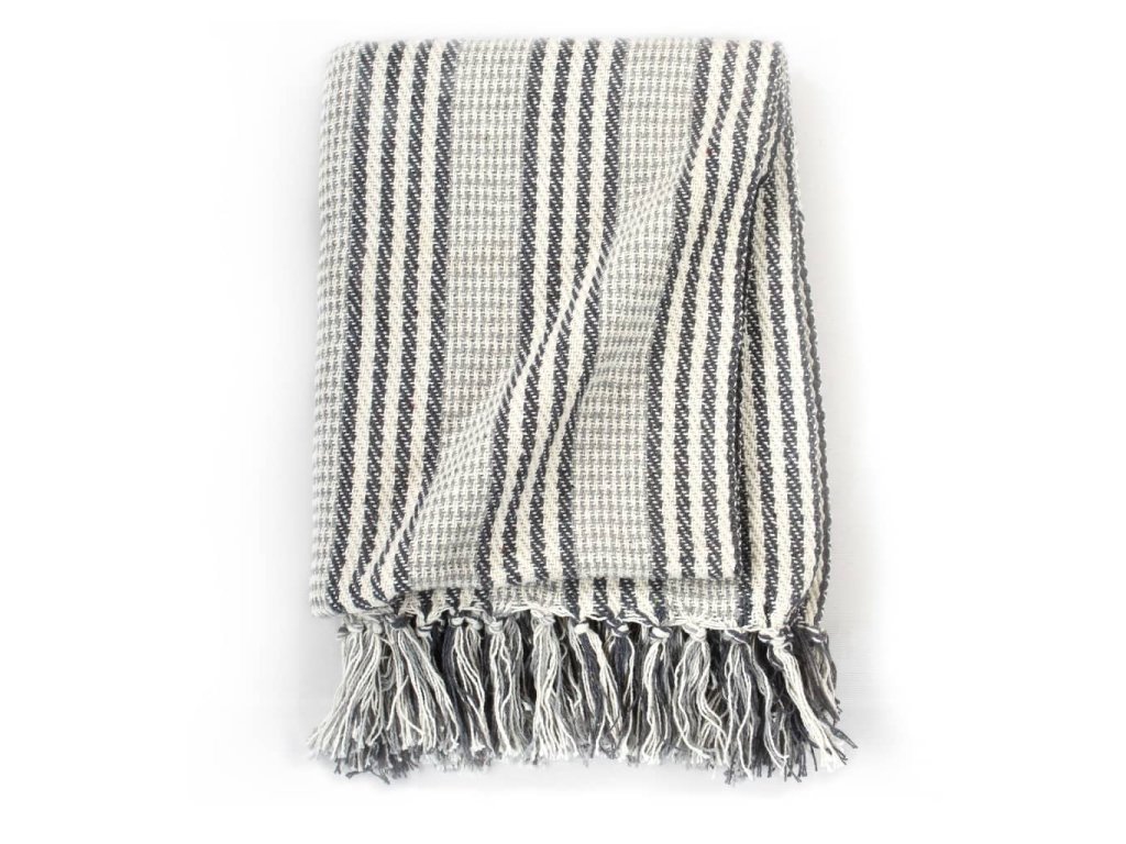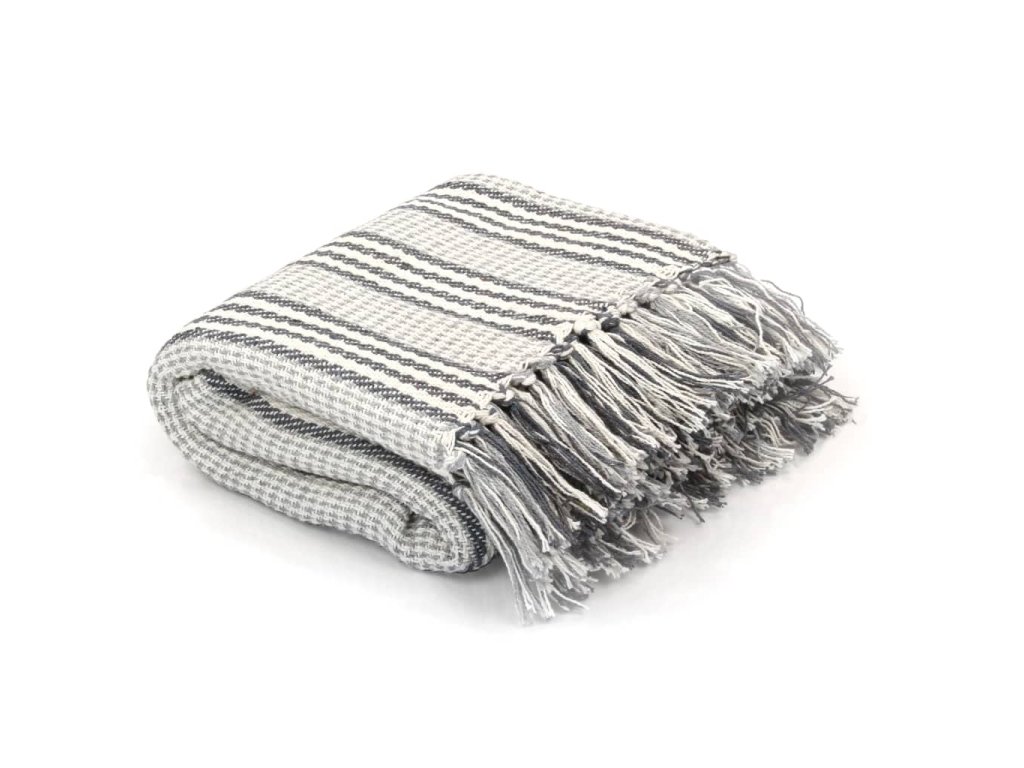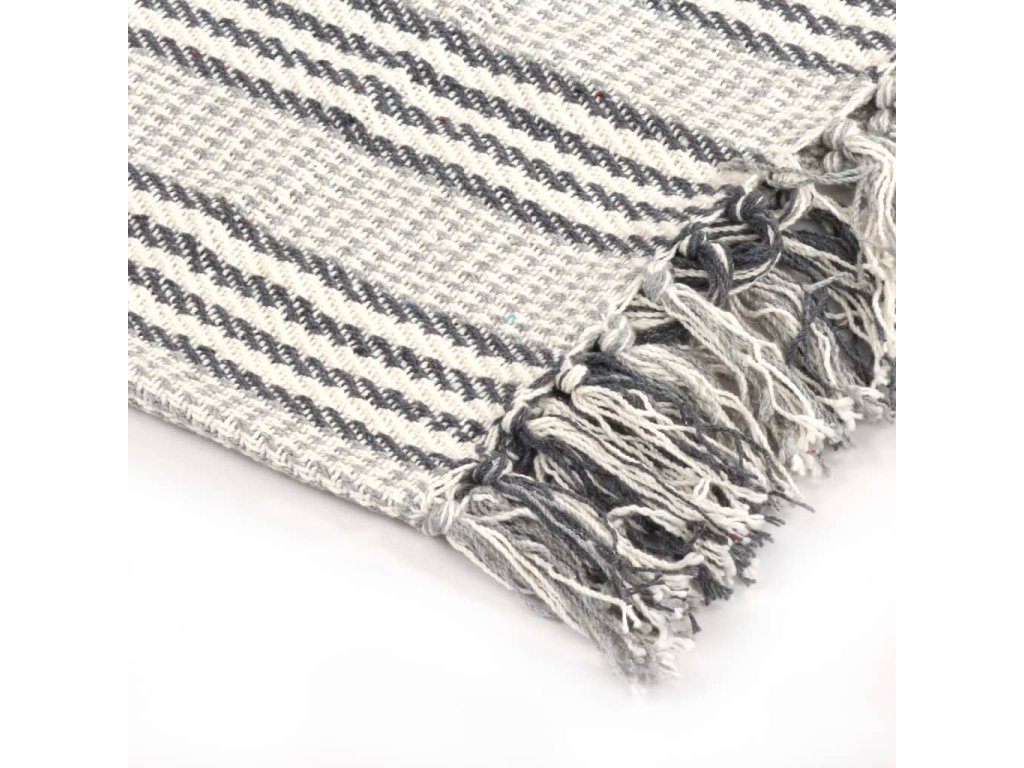 Přehoz bavlněný pruhy 125 x 150 cm šedo-bílý