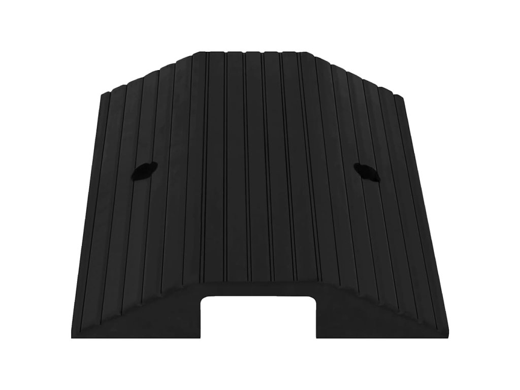 Přejezdová rampa je vyrobena z pevné pryže, je lehká a dostatečně odolná pro dlouhodobé používání. Drsný povrch má protiskluzovou strukturu, která pomáhá zabránit uklouznutí při nájezdu.