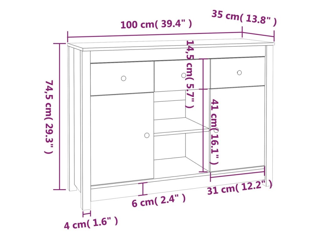Příborník 100 x 35 x 74,5 cm masivní borové dřevo