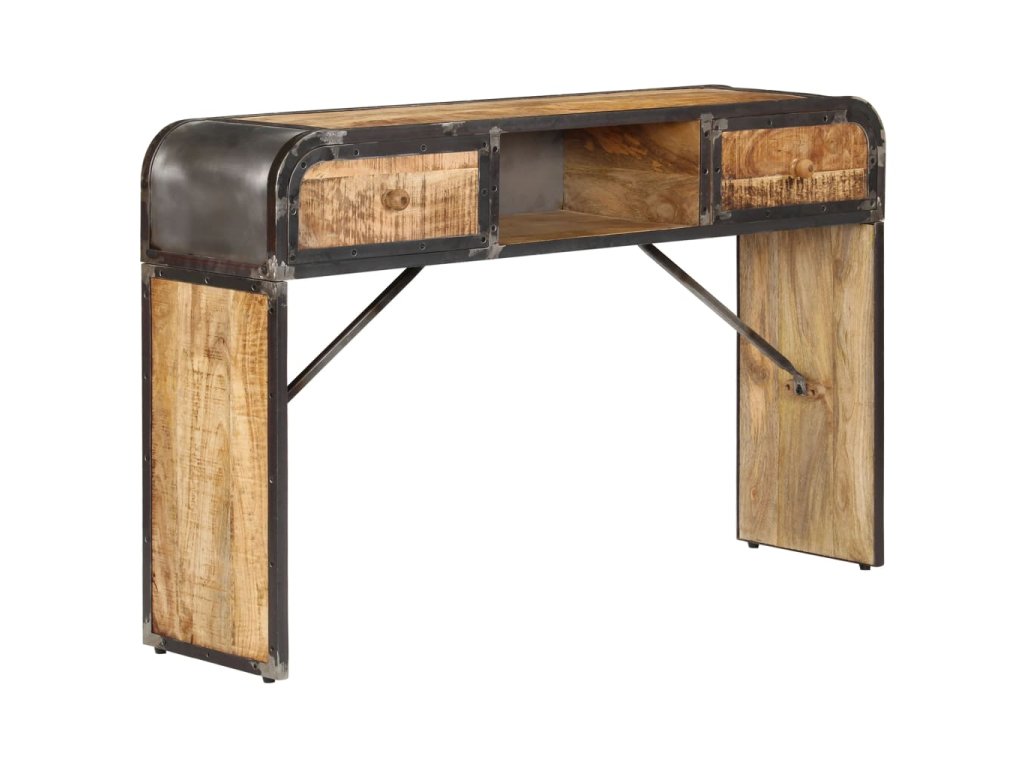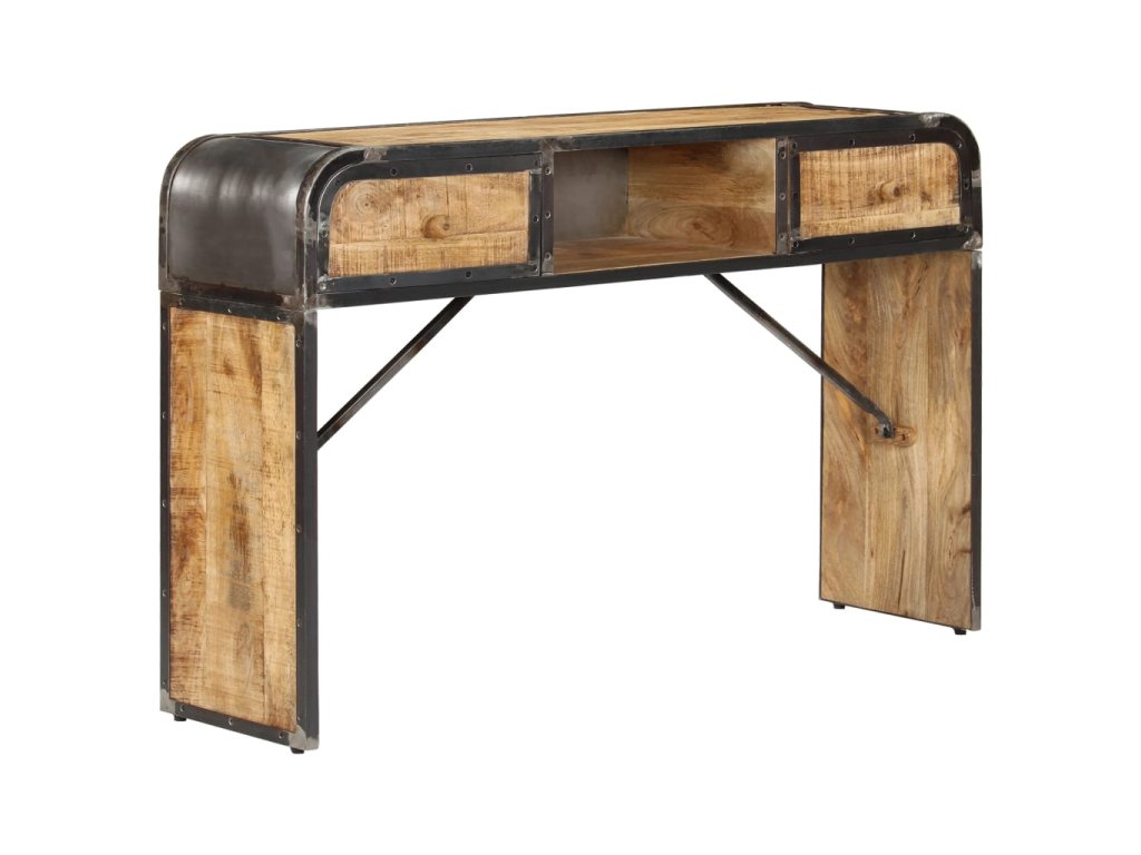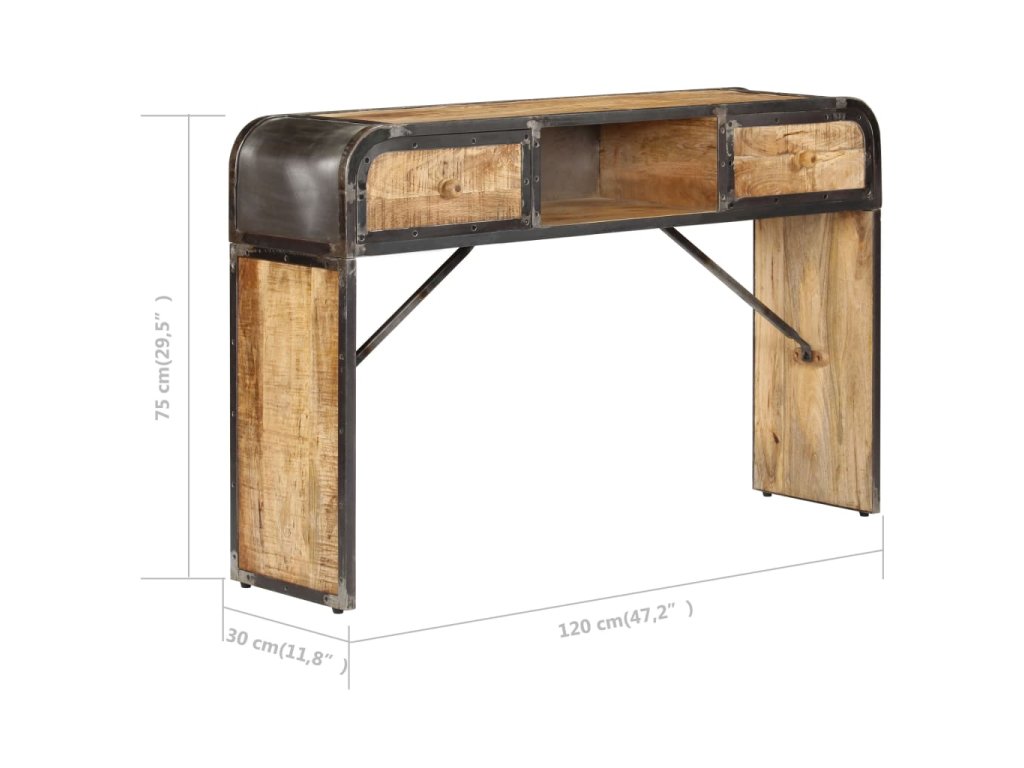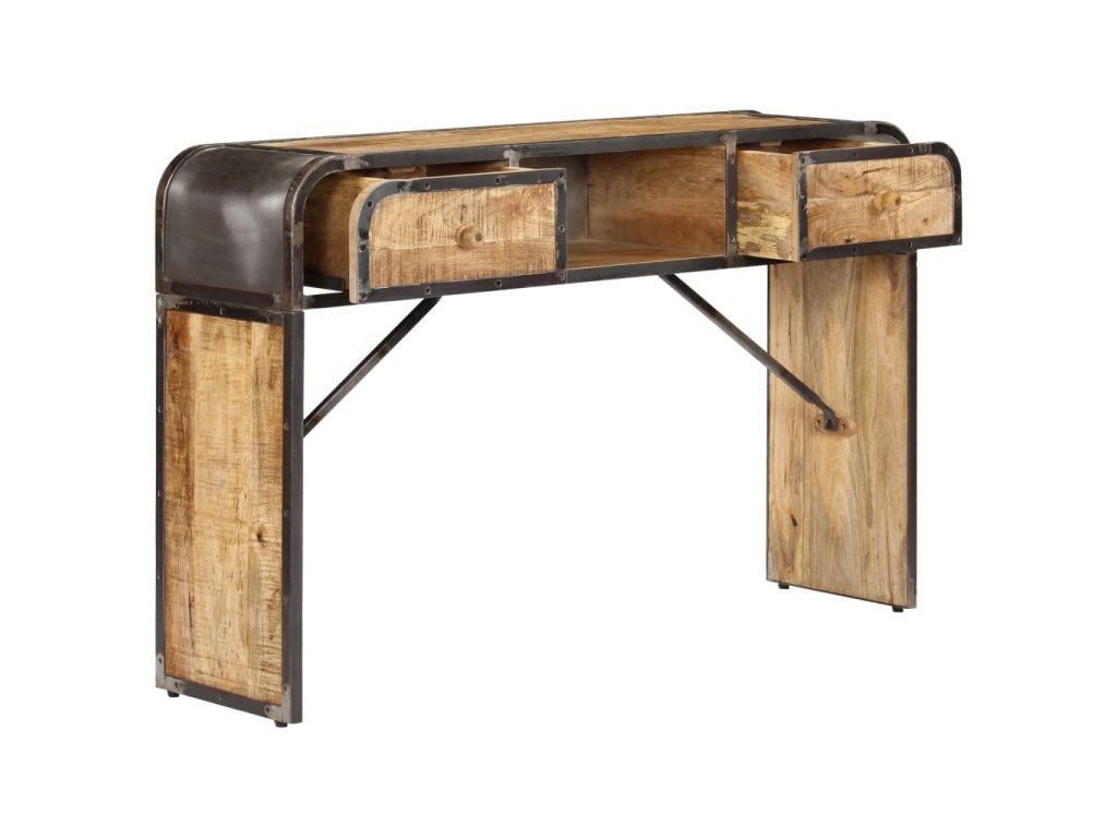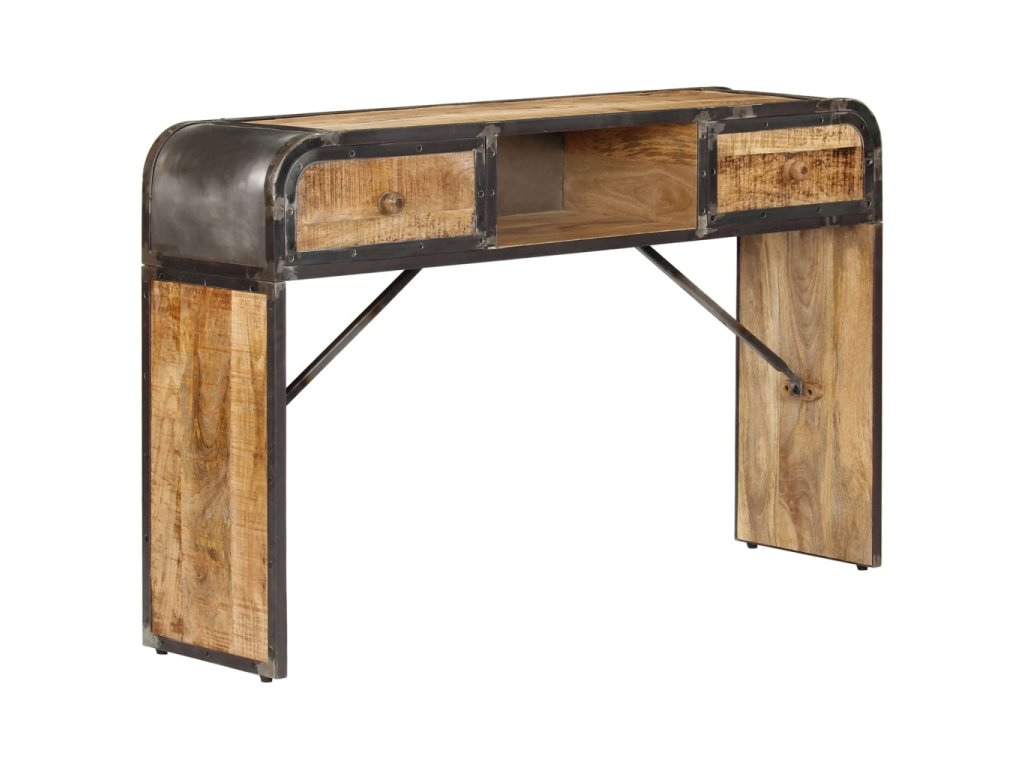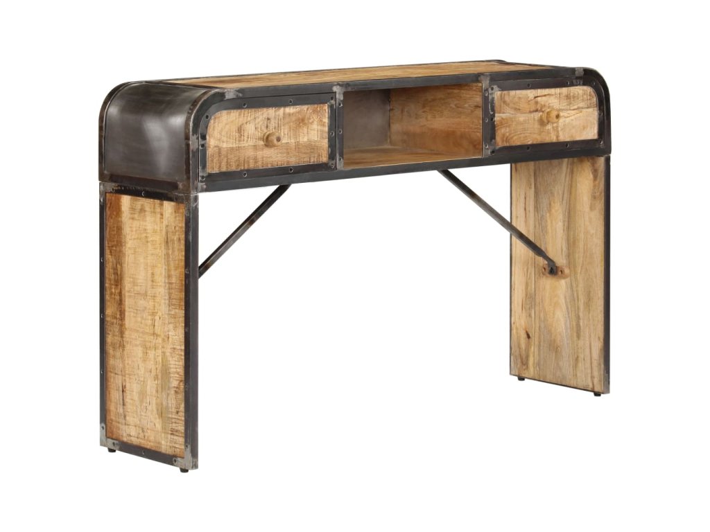 Příborník je vyroben z masivního mangovníku, což je tvrdé dřevo s hustou texturou. Hrubé mangovníkové dřevo je nejen schopné unést značnou váhu, ale výborně také odolává opotřebení a působení času. Skříňka s překrásným designem je proto stabilní, odolná a příjemná na pohled. Precizní řemeslné zpracování je zárukou, že byla každé fázi výrobního procesu věnována mimořádná péče, ať už šlo o leštění nebo lakování. Železný rám podtrhuje industriální styl skříňky do předsíně. Příborník disponuje 2 zásuvkami a 1 přihrádkou, poskytne vám tedy spoustu místa, kam si můžete ukládat své knížky a všelijaké další věci.
