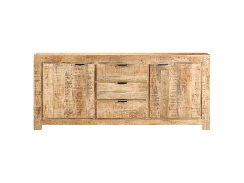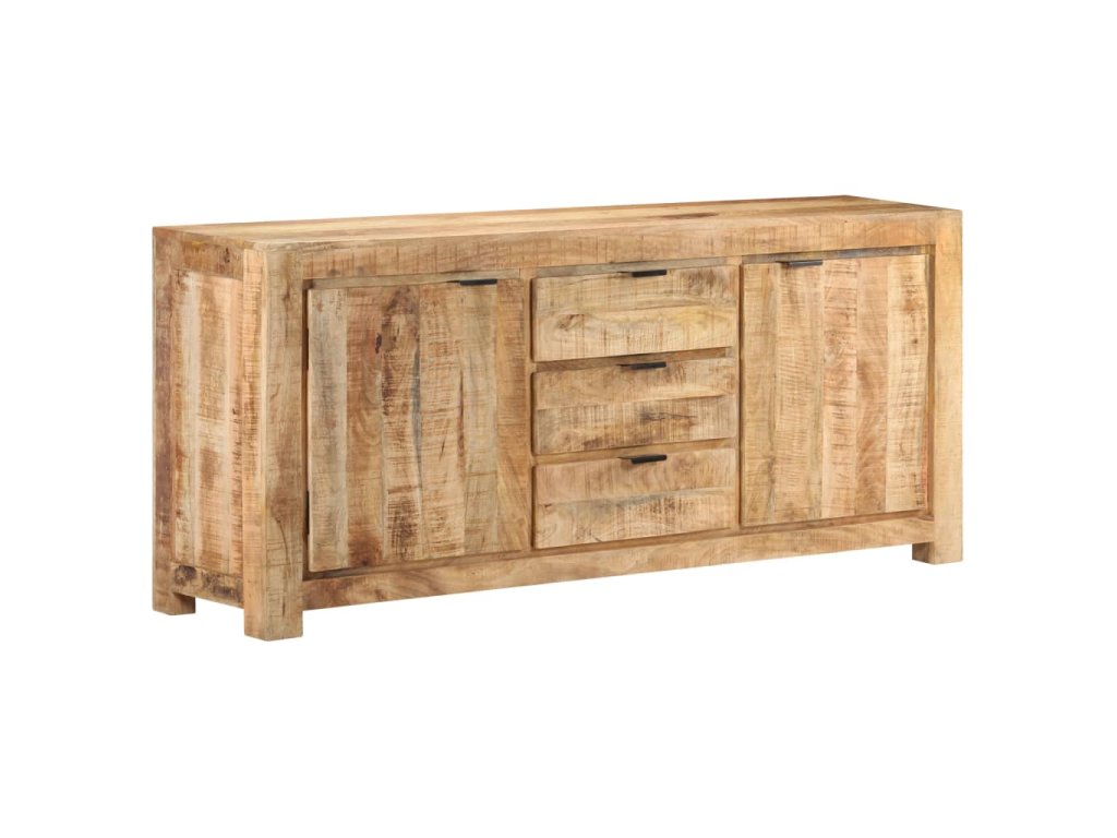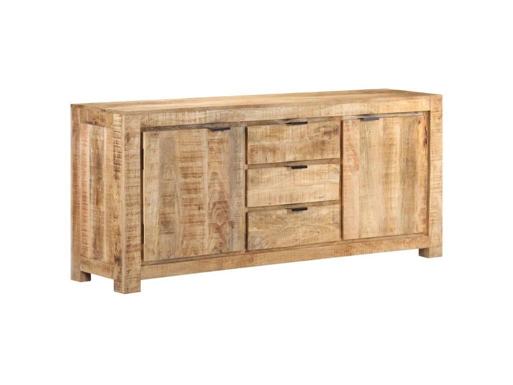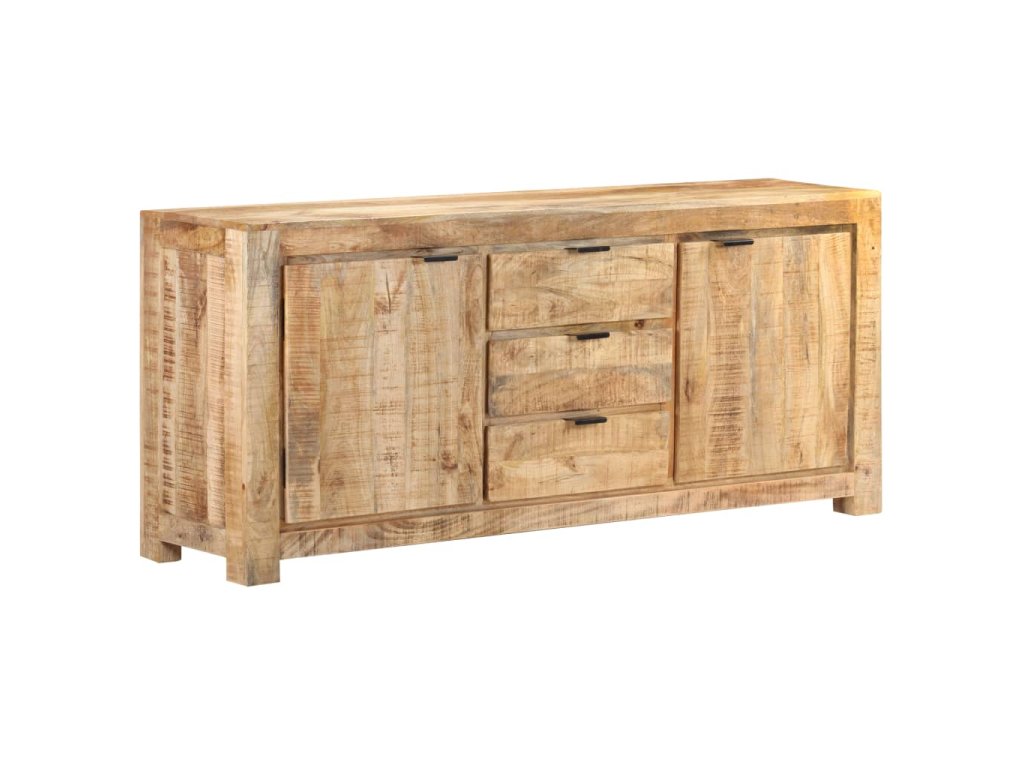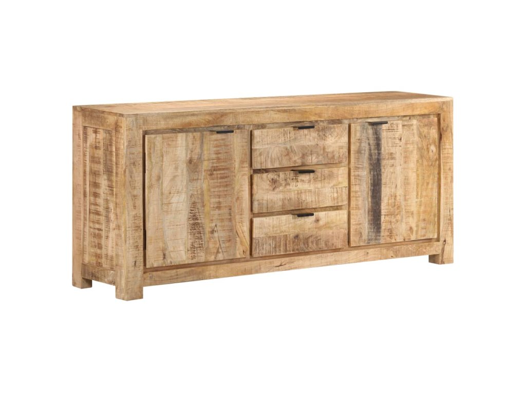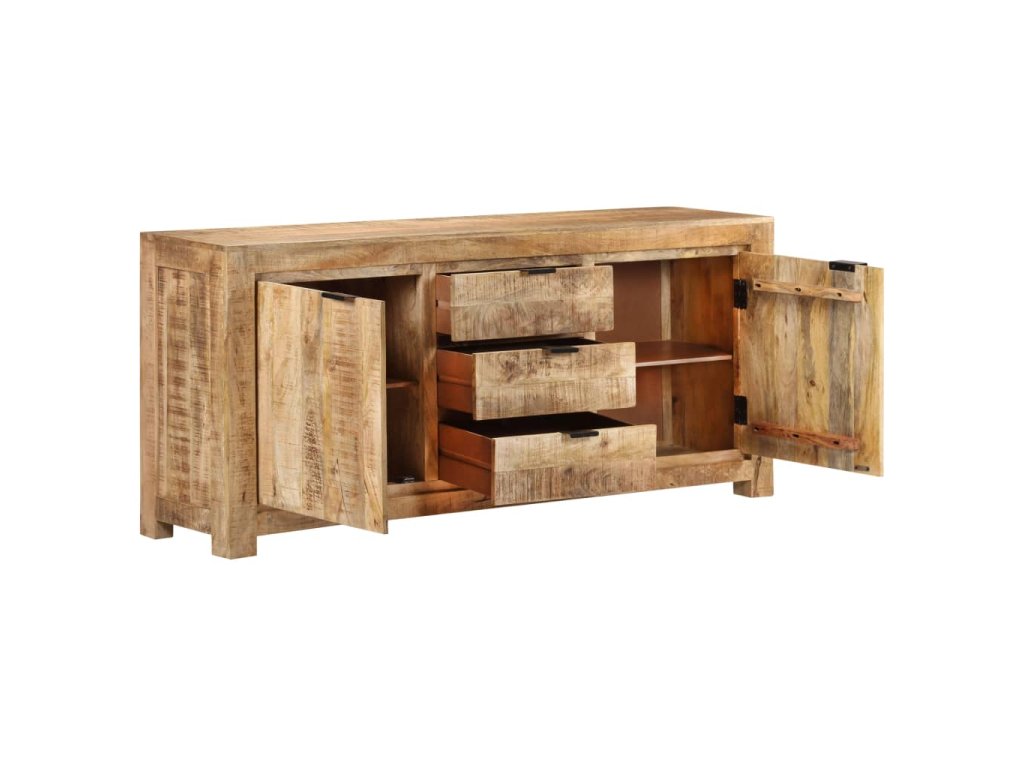 Tato odkládací skříňka je vyrobená z hrubého mangovníkového dřeva, tropického tvrdého dřeva, které snese nadměrné zatížení a odolá opotřebení v průběhu času. Prvotřídní řemeslné zpracování a nádherná struktura dřeva je mírně odlišná na každém kusu nábytku, takže se jednotlivé kusy lehce odlišují. Skříňka se 2 dvířky a 3 zásuvkami nabízí spoustu místa, kde můžete uschovat knihy, časopisy a další předměty dobře organizované a na dosah ruky. Její robustní horní část je navíc ideální pro umístění dekorativních předmětů, jako jsou vázy a fotorámečky.