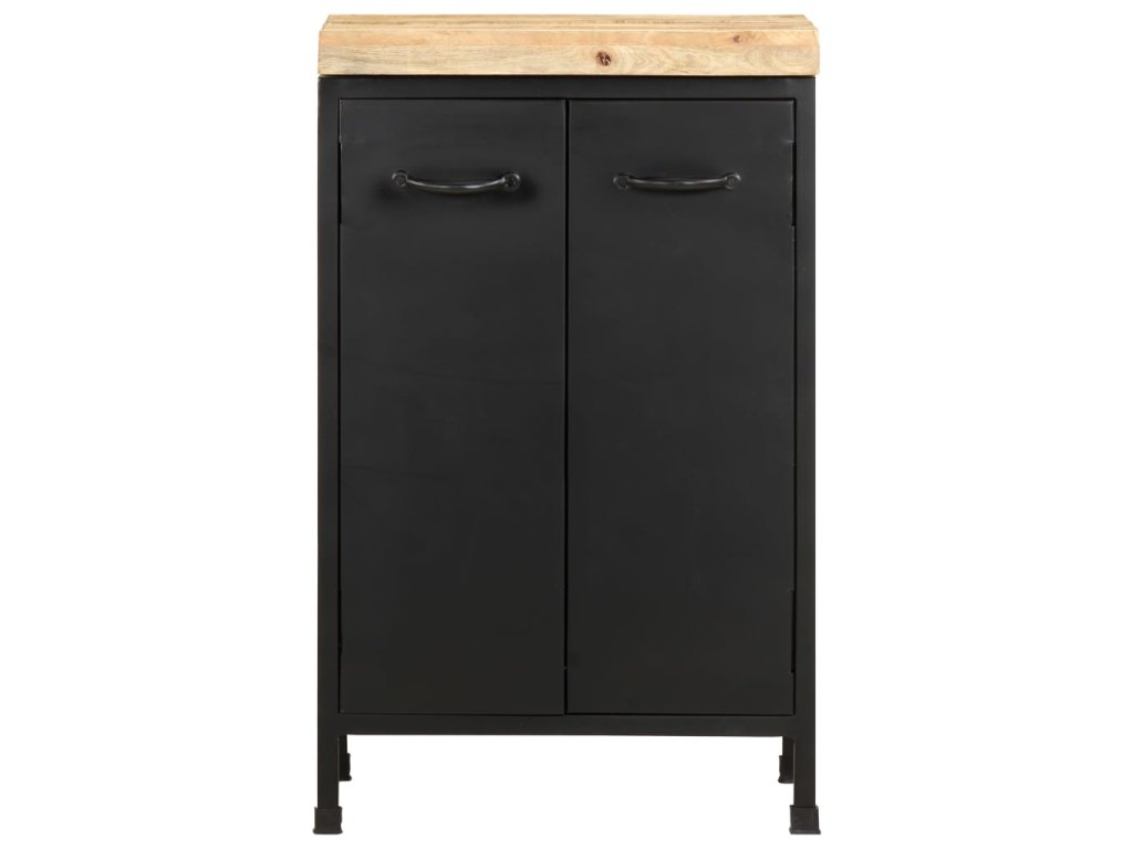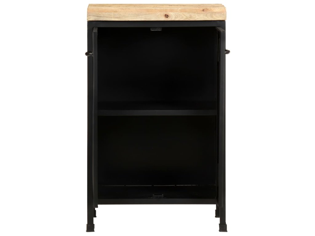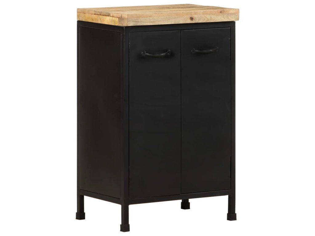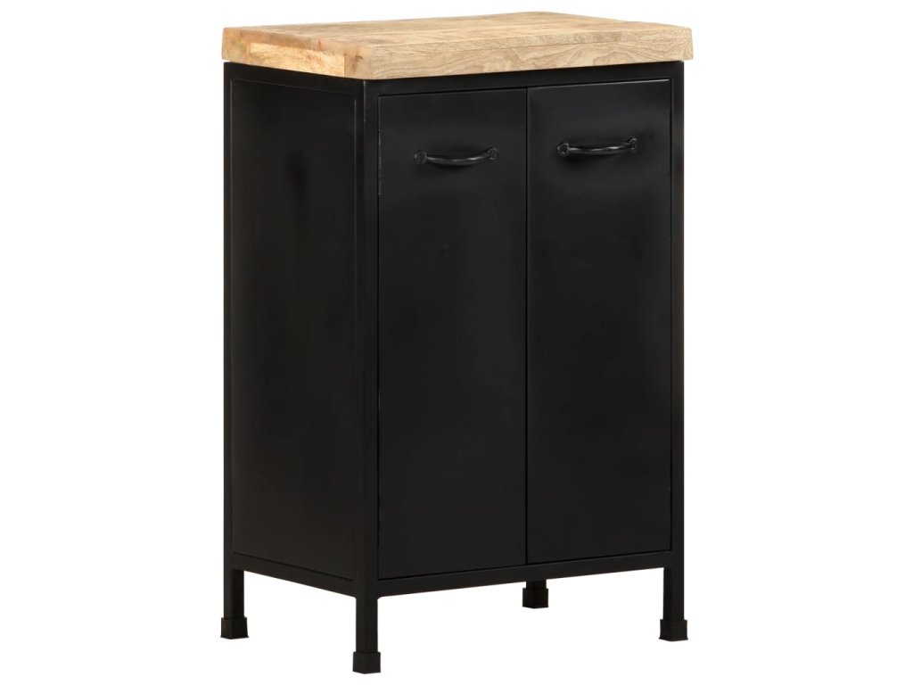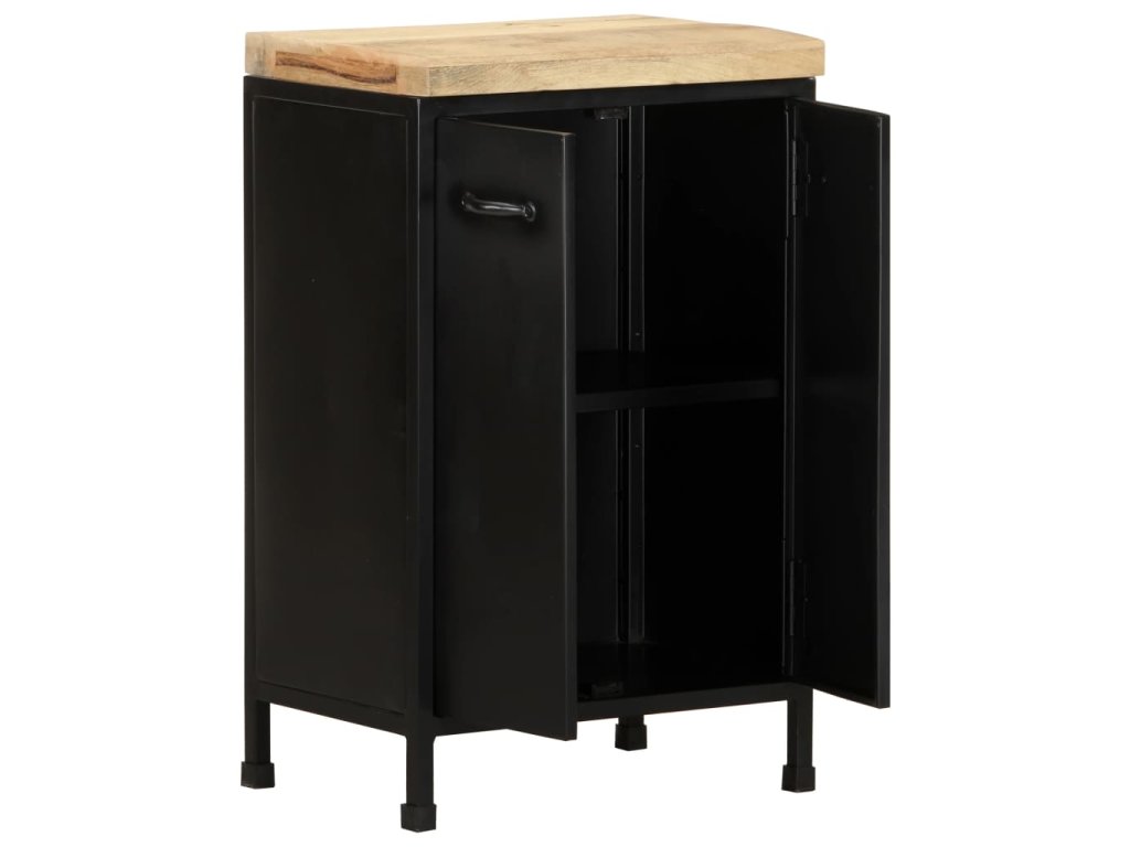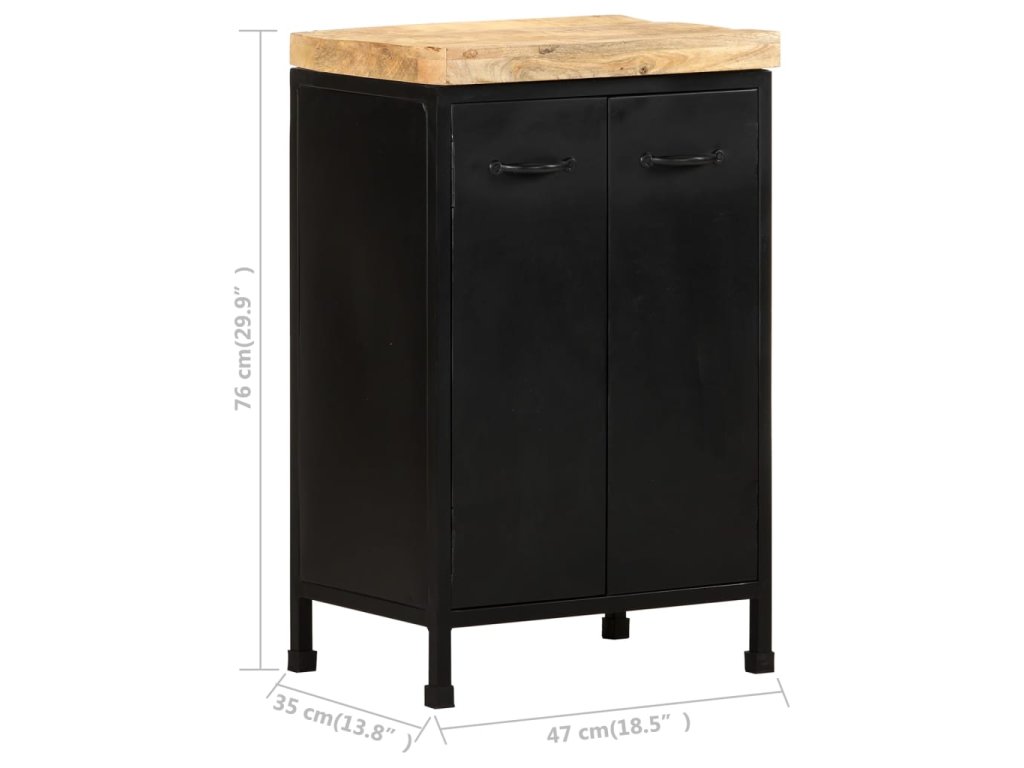 Odkládací skříňka je vyrobená z hrubého mangovníku. Toto tropické tvrdé dřevo dokáže unést značnou váhu a skvěle odolává opotřebení i působení času, takže je velice stabilní a dlouho vám vydrží. Práškově lakovaný železný rám přispívá k výtečné stabilitě a robustnosti skříňky. Za dvoukřídlými dvířky najdete spoustu úložného prostoru. Bytelná horní deska skříňky je perfektní k vystavení nejrůznějších dekorací, jako jsou zarámované fotografie, pokojové rostliny, vázy apod.