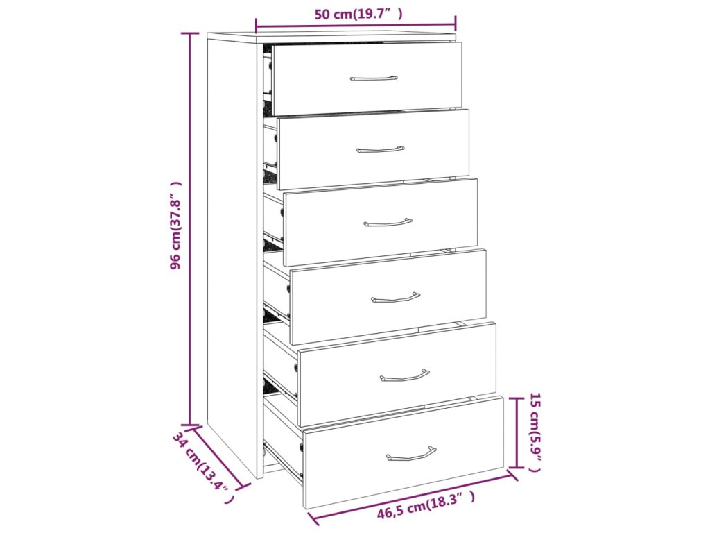 Příborník 6 zásuvek kouřový dub 50x34x96 cm kompozitní dřevo