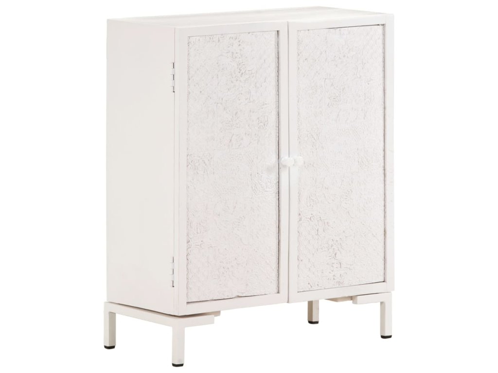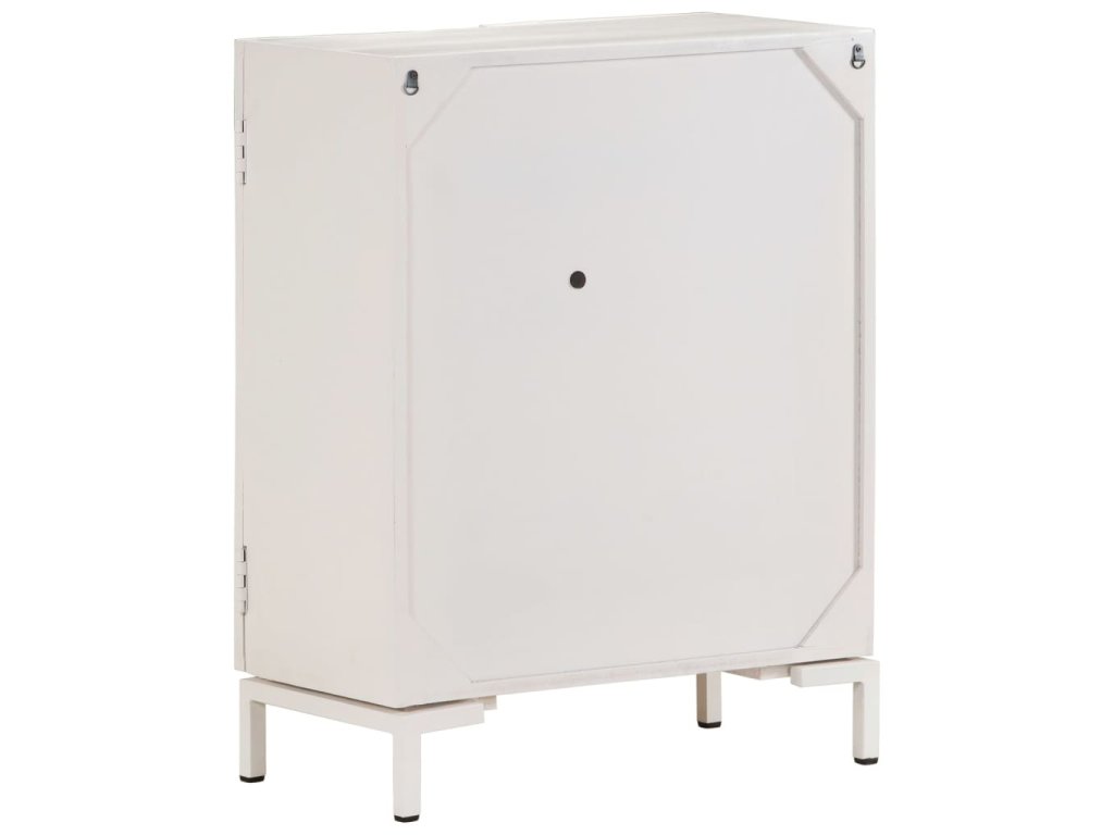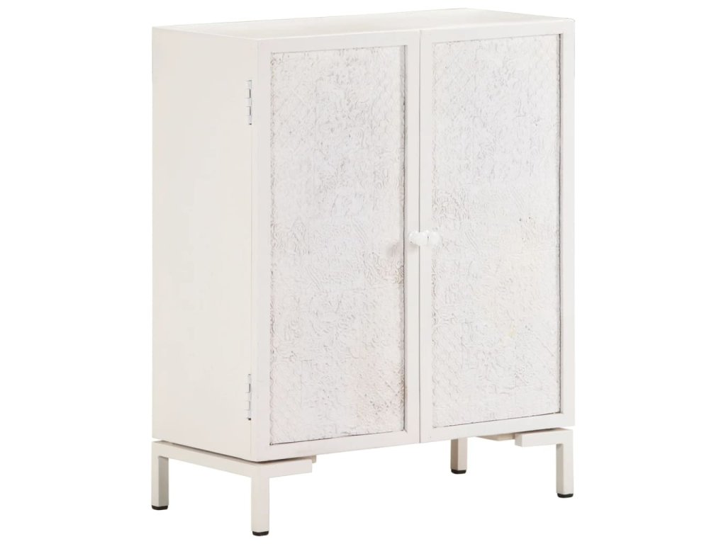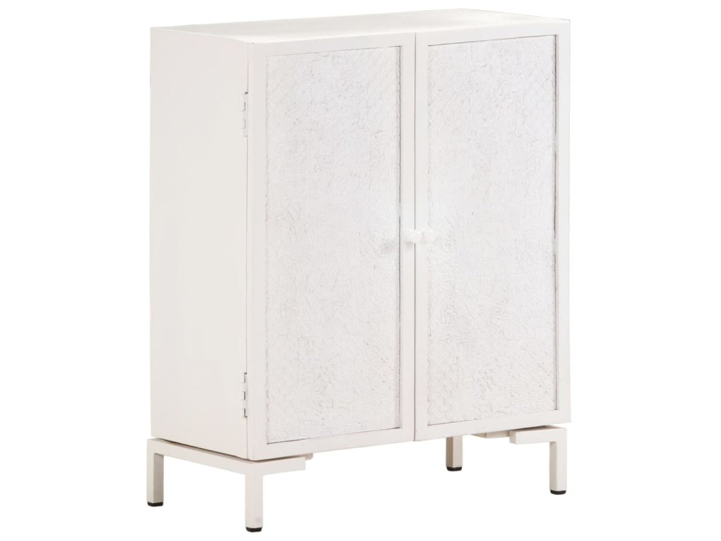 Odkládací skříňka je vyrobená z masivního mangovníku. Toto tropické tvrdé dřevo dokáže unést značnou váhu a skvěle odolává zubu času, takže je velice stabilní a odolné. Práškově lakovaný železný rám přispívá k celkové stabilitě skříňky. Ve skříňce jsou přihrádky se 2 dvířky, za kterými najdete spoustu úložného prostoru. Pevná horní deska je perfektní k vystavení nejrůznějších dekorací, jako jsou zarámované fotografie, pokojové rostliny, vázy apod.