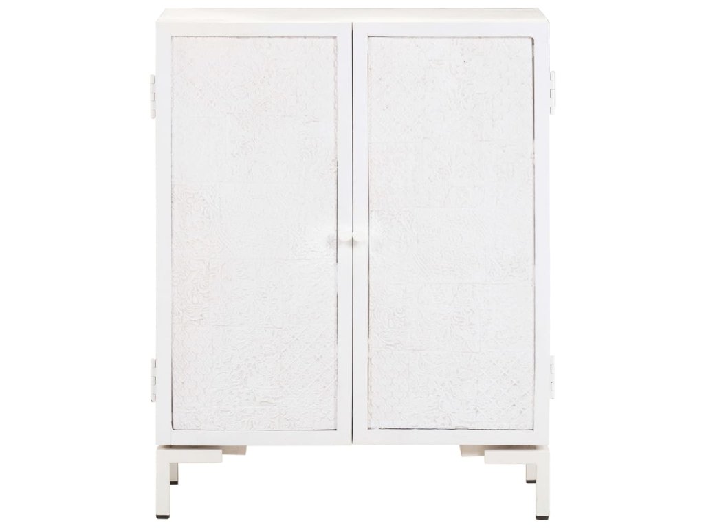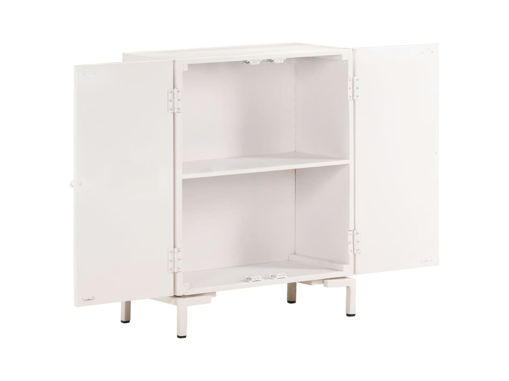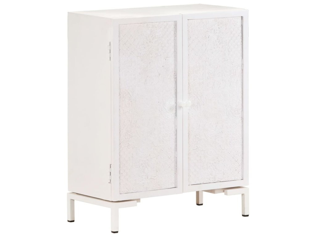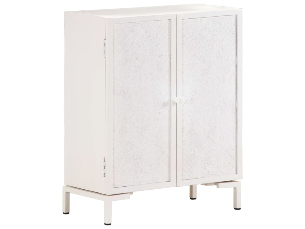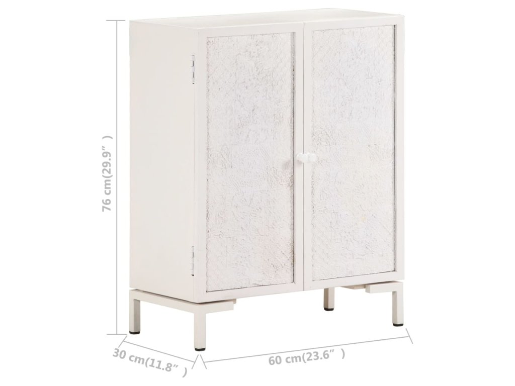 Odkládací skříňka je vyrobená z masivního mangovníku. Toto tropické tvrdé dřevo dokáže unést značnou váhu a skvěle odolává zubu času, takže je velice stabilní a odolné. Práškově lakovaný železný rám přispívá k celkové stabilitě skříňky. Ve skříňce jsou přihrádky se 2 dvířky, za kterými najdete spoustu úložného prostoru. Pevná horní deska je perfektní k vystavení nejrůznějších dekorací, jako jsou zarámované fotografie, pokojové rostliny, vázy apod.